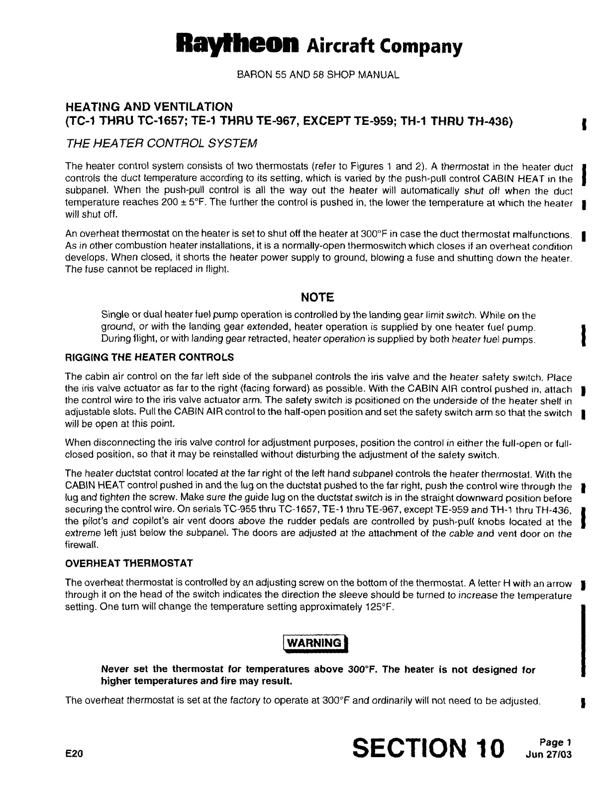 Raytheon Beech Baron E55 - Heating and Ventilation (TC-1 thru TC-1657;