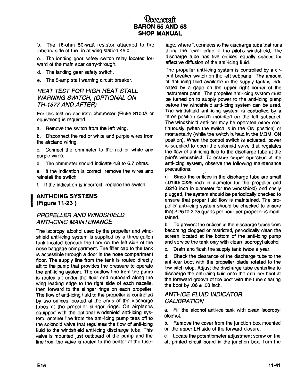 Raytheon Beech Baron E55 - Anti-Icing Systems