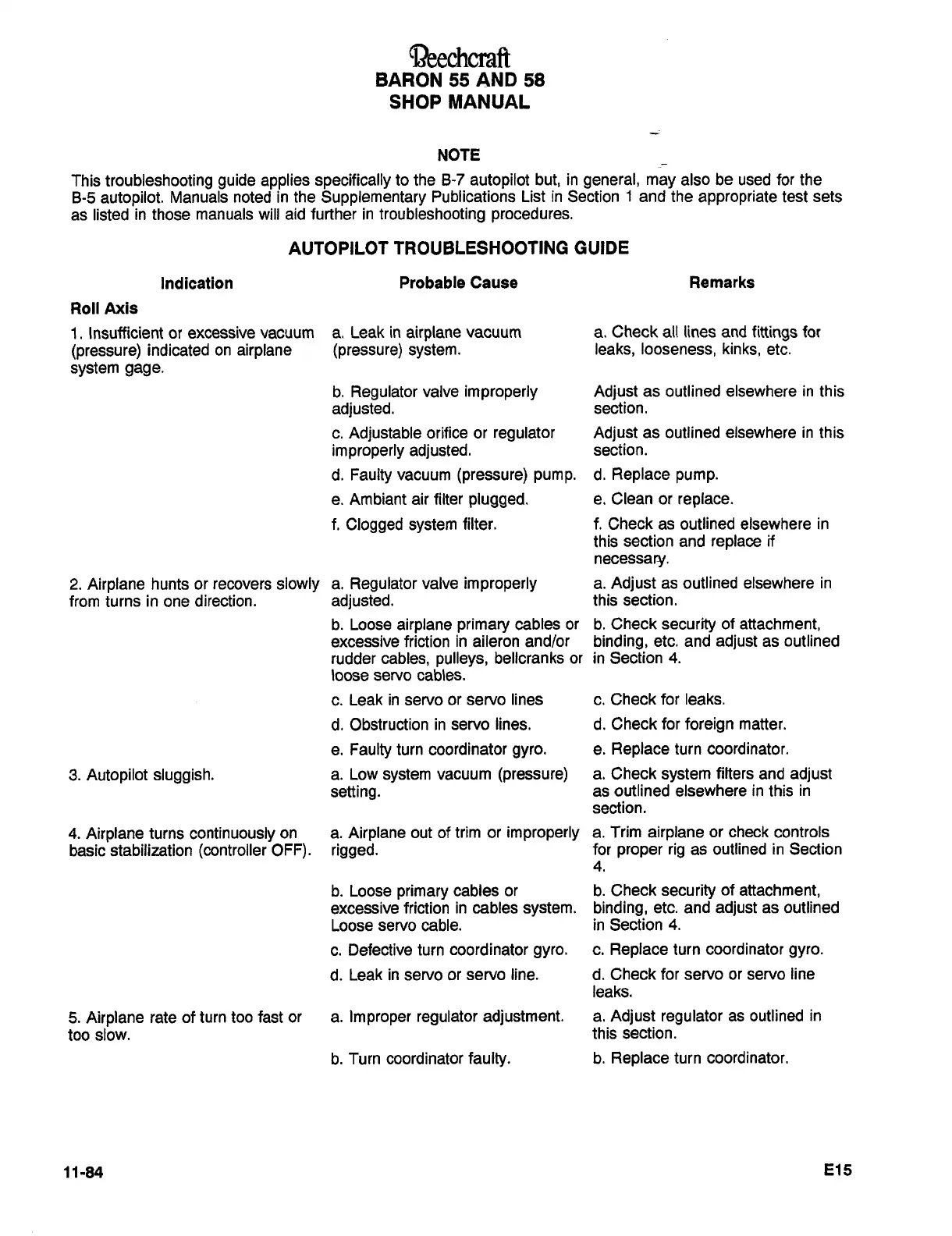 Raytheon Beech Baron E55 - Autopilot Troubleshooting Guide