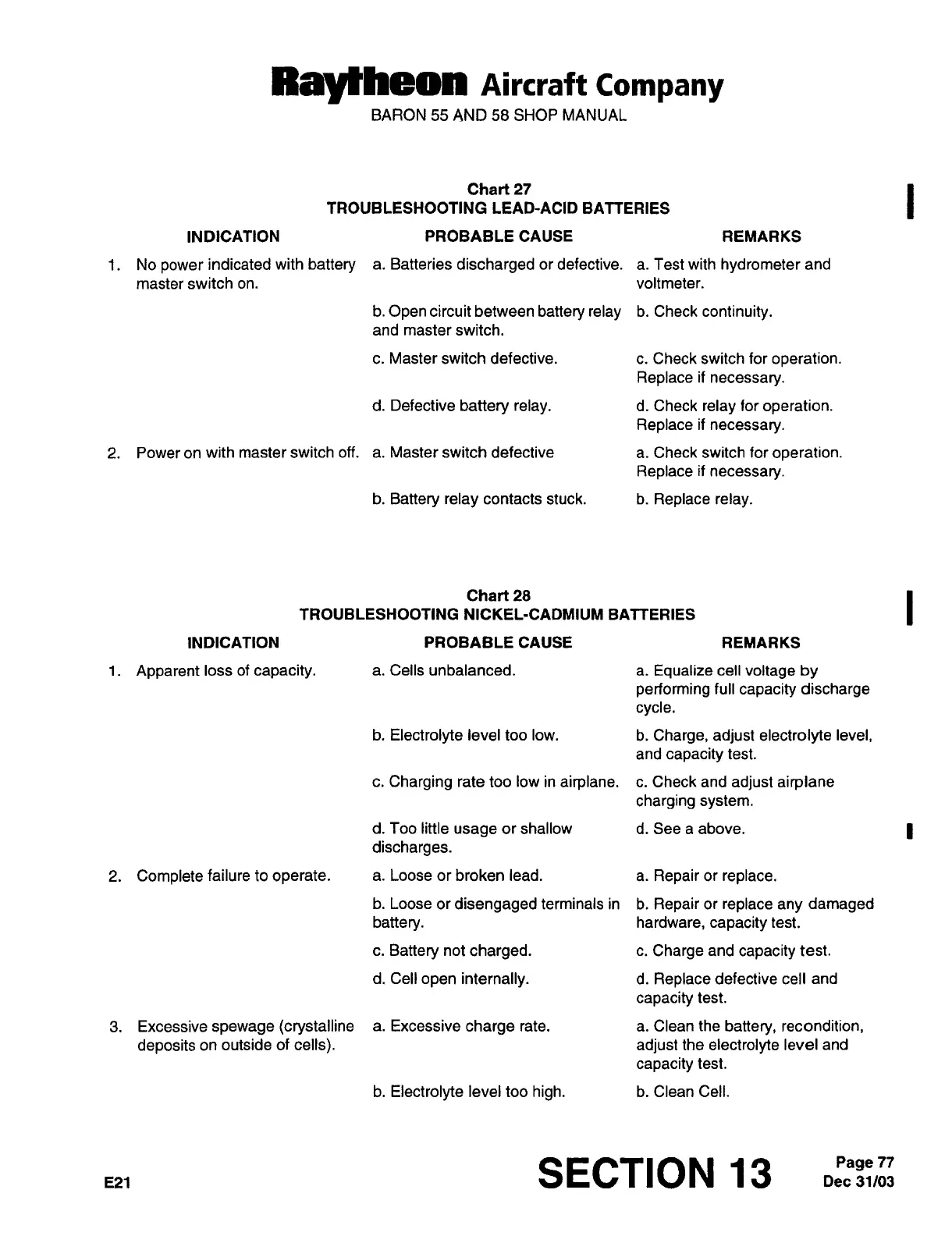 Raytheon Beech Baron E55 - Troubleshooting Batteries