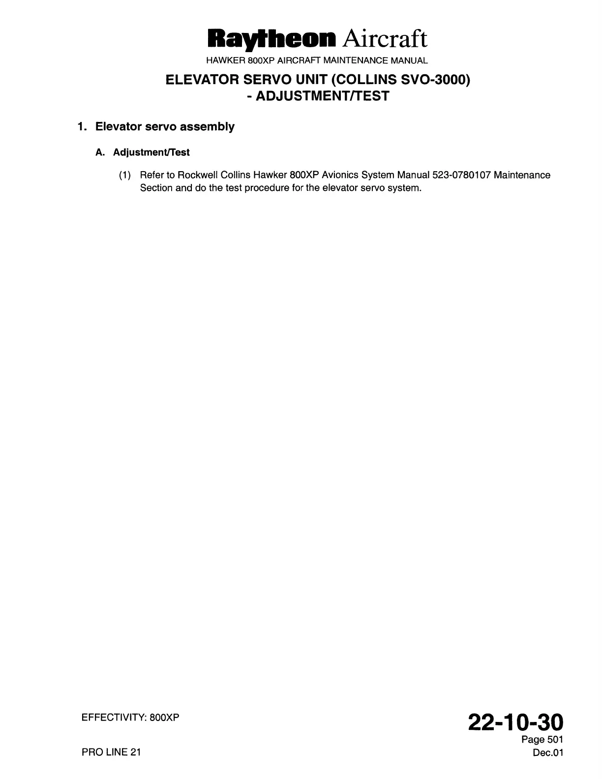 Raytheon PRO LINE 21 - Elevator Servo Unit Adjustment and Test
