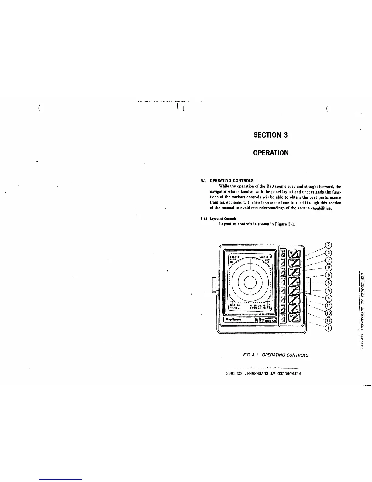 Raytheon R20 - SECTION 3 OPERATION; OPERATING CONTROLS; Layout of Controls