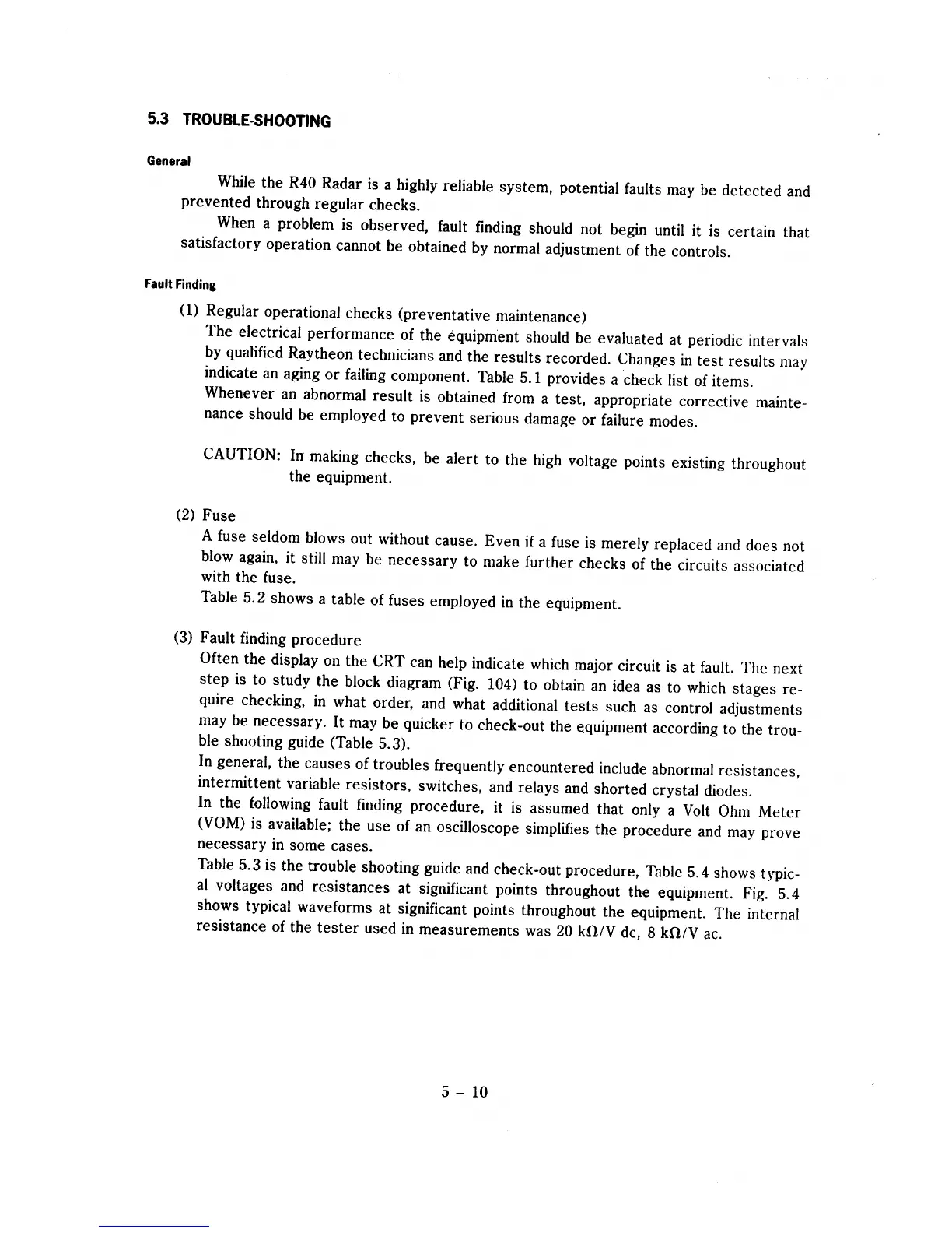 Raytheon R40 - 5.3 TROUBLE-SHOOTING