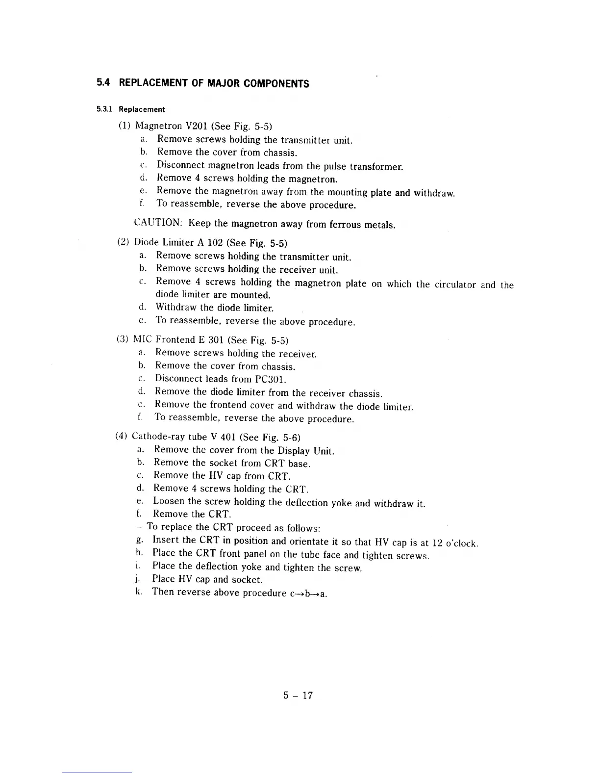 Raytheon R40 - 5.4 REPLACEMENT OF MAJOR COMPONENTS