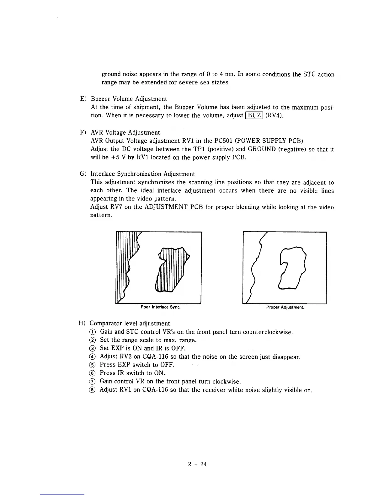 Raytheon R40X - Buzzer Volume Adjustment; AVR Voltage Adjustment; Interlace Synchronization Adjustment; Comparator Level Adjustment