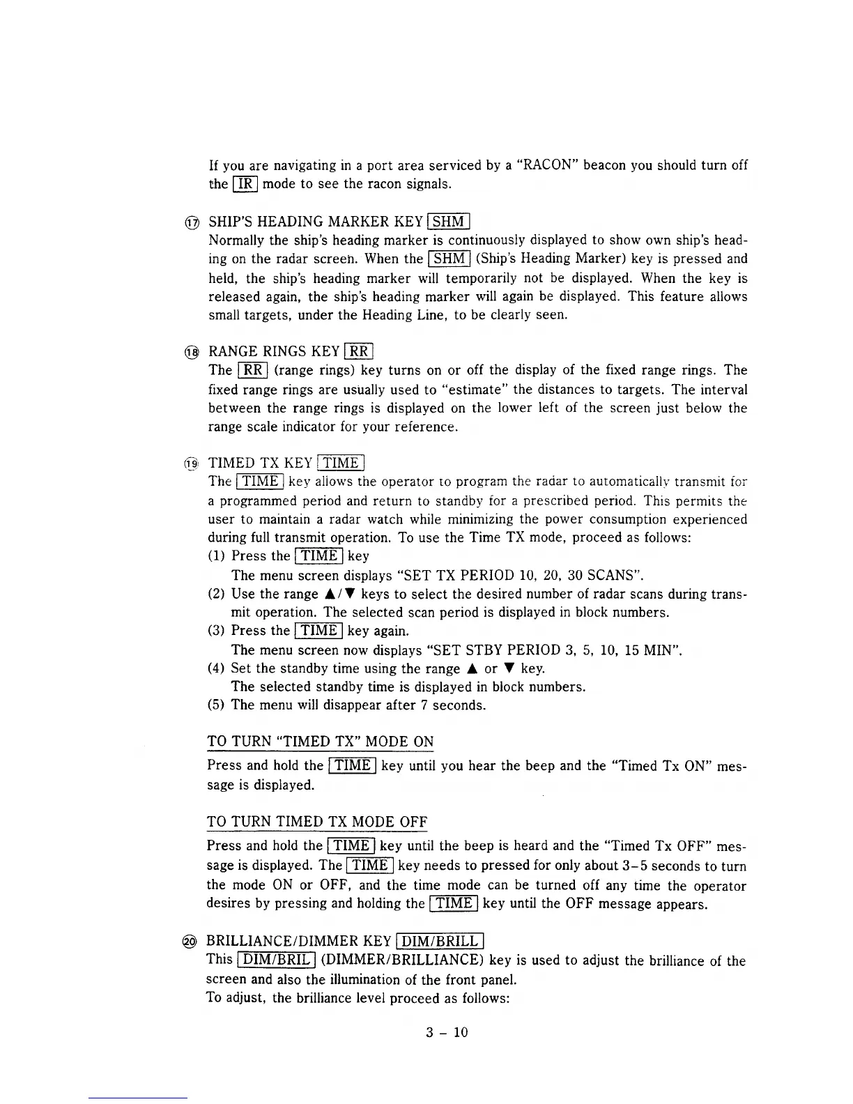 Raytheon R40X - Range Rings Key; Timex TX Key; Brilliance;Dimmer Key