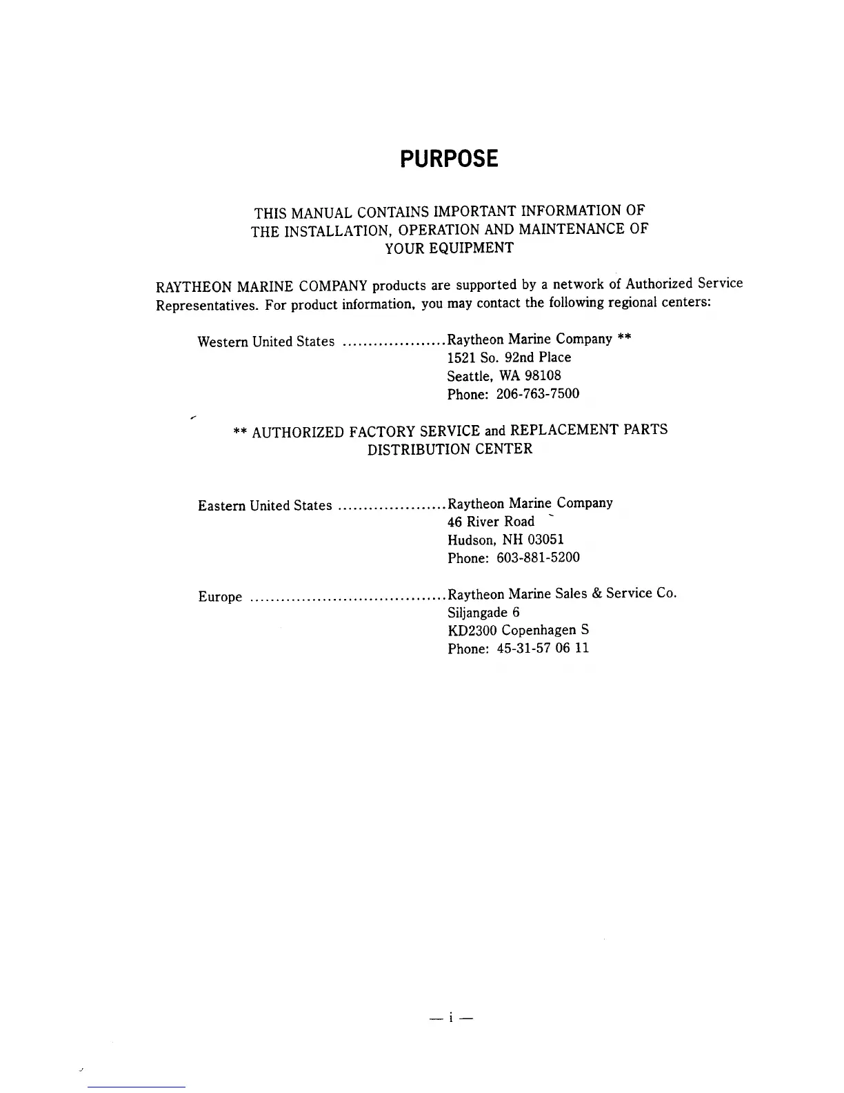 Raytheon R40X - PURPOSE; Contacting Regional Service Centers