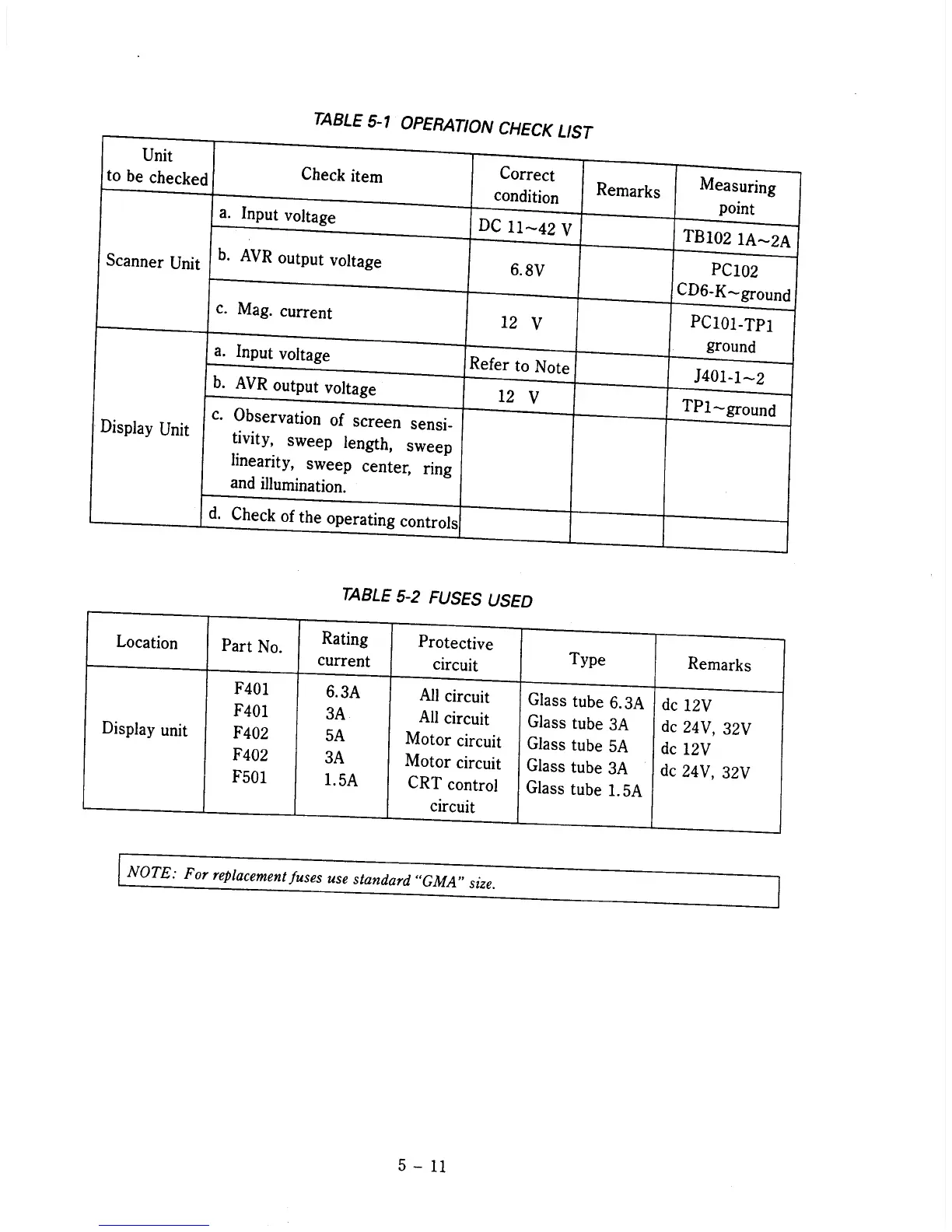 Raytheon R41 - Operation Check List; Fuses Used