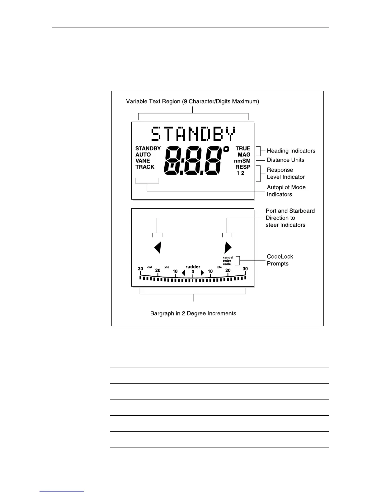 The bar graph at the bottom of the display is normally a rudder bar.