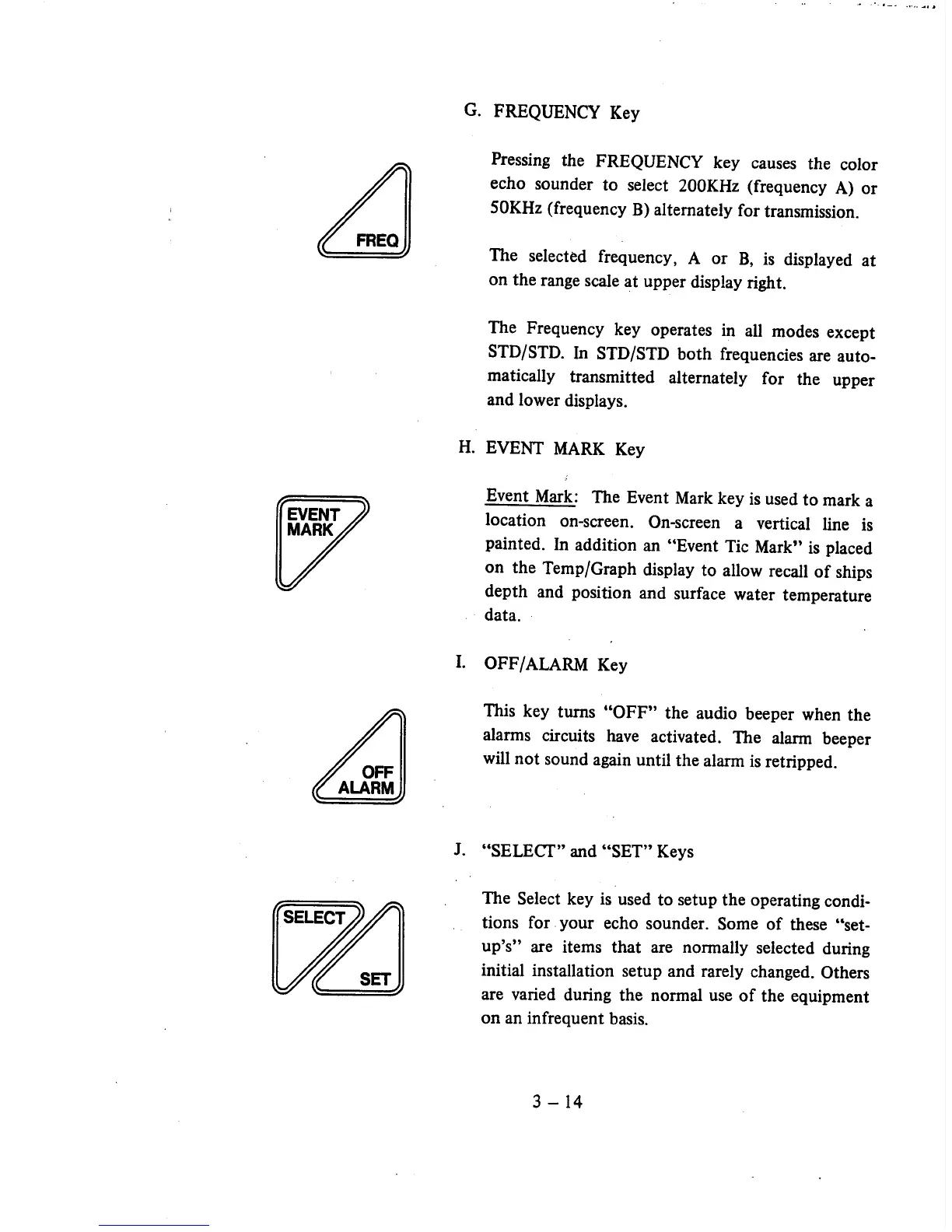 Raytheon V800 - Frequency Key; Event Mark Key; Off;Alarm Key; Select and Set Keys