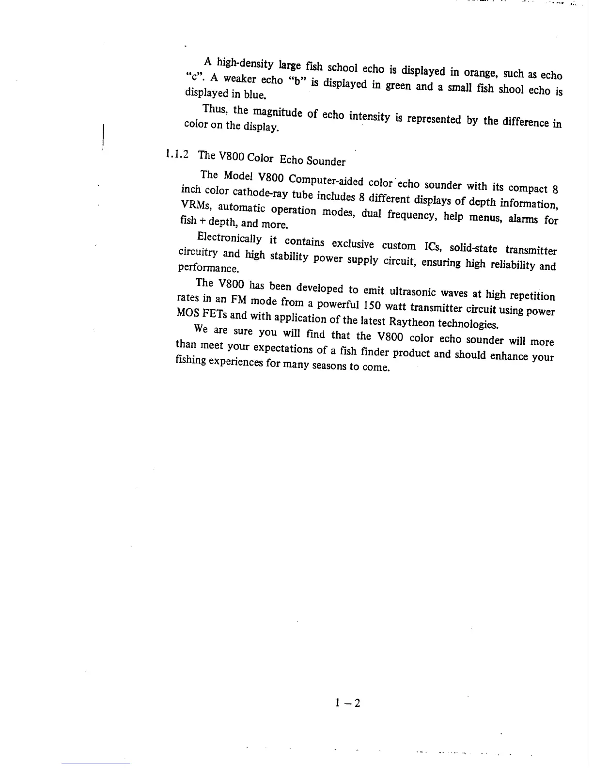 Raytheon V800 - The V800 Color Echo Sounder