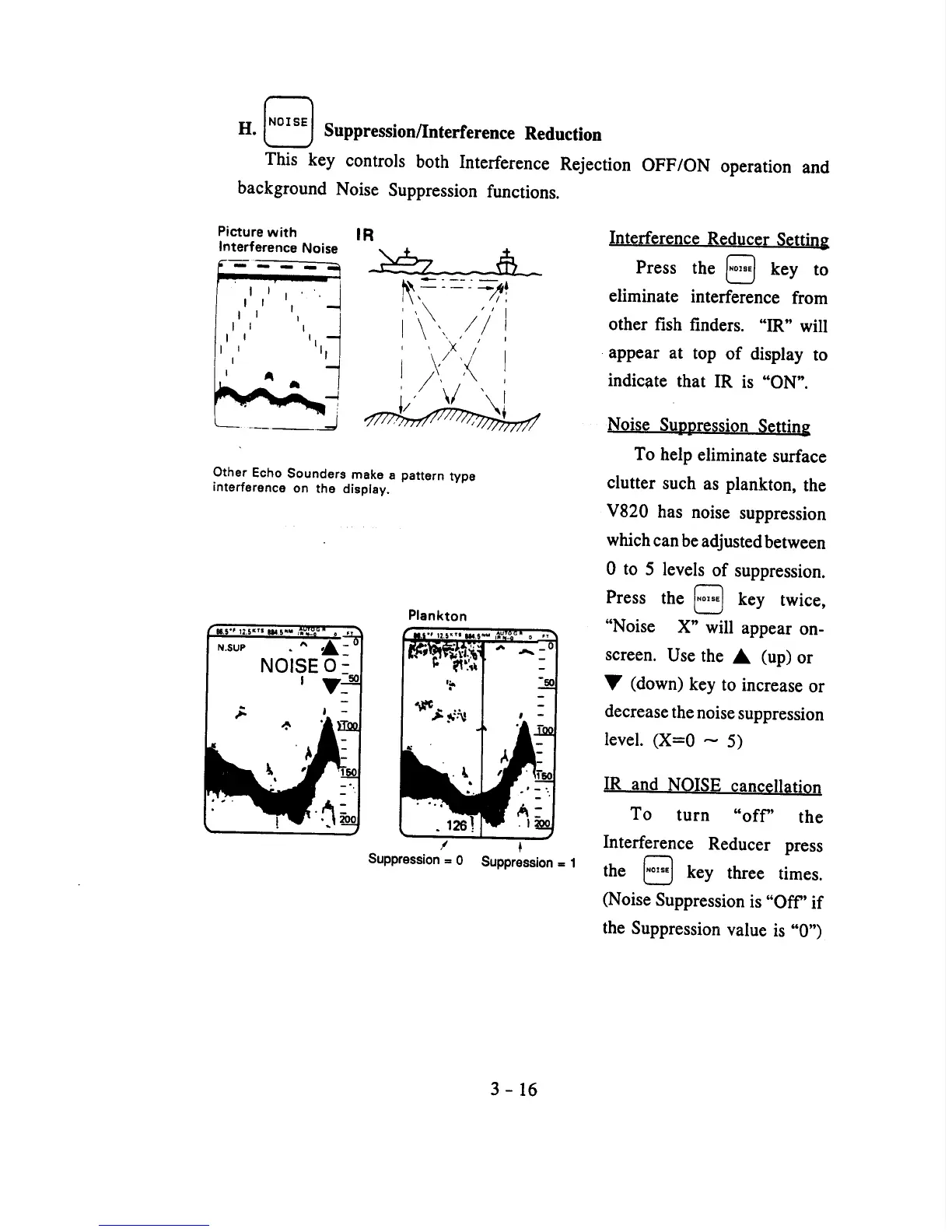 Raytheon V820 - Suppression;Interference Reduction; Noise Suppression Setting; IR and NOISE Cancellation