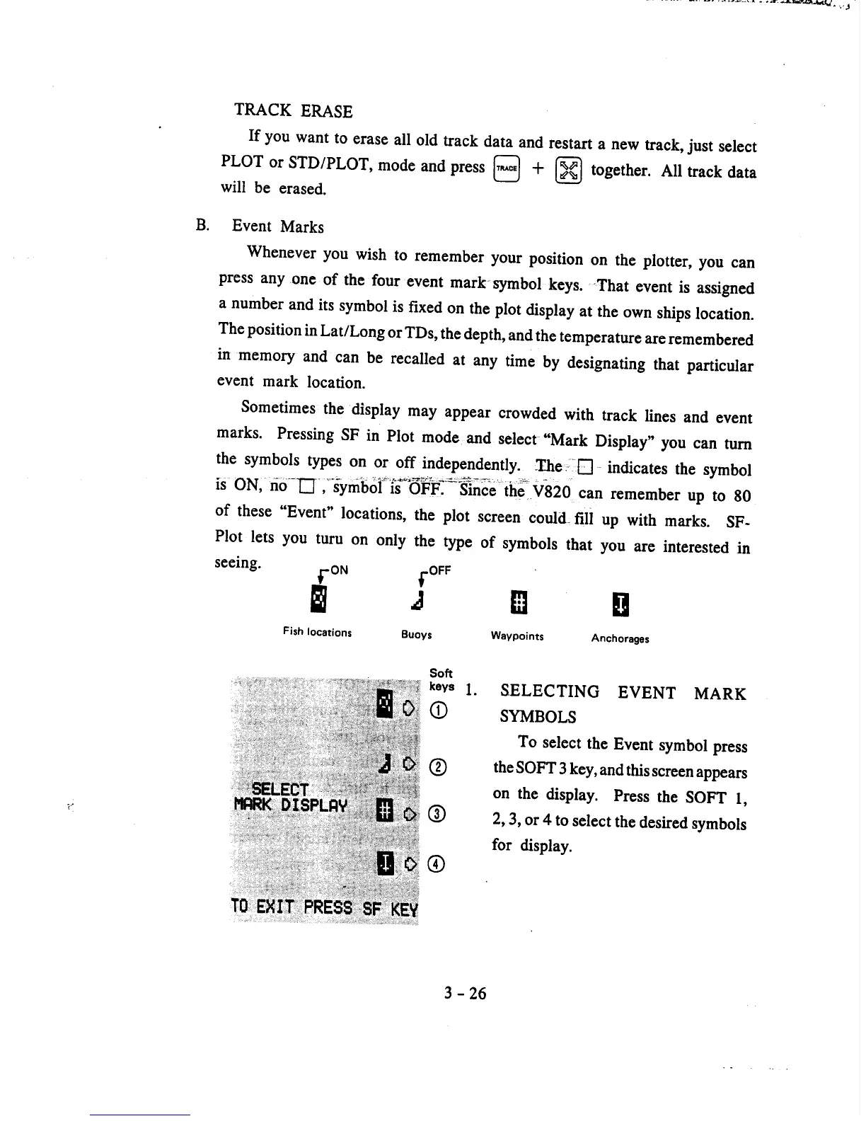 Raytheon V820 - Track Erase; Event Marks; Selecting Event Mark Symbols