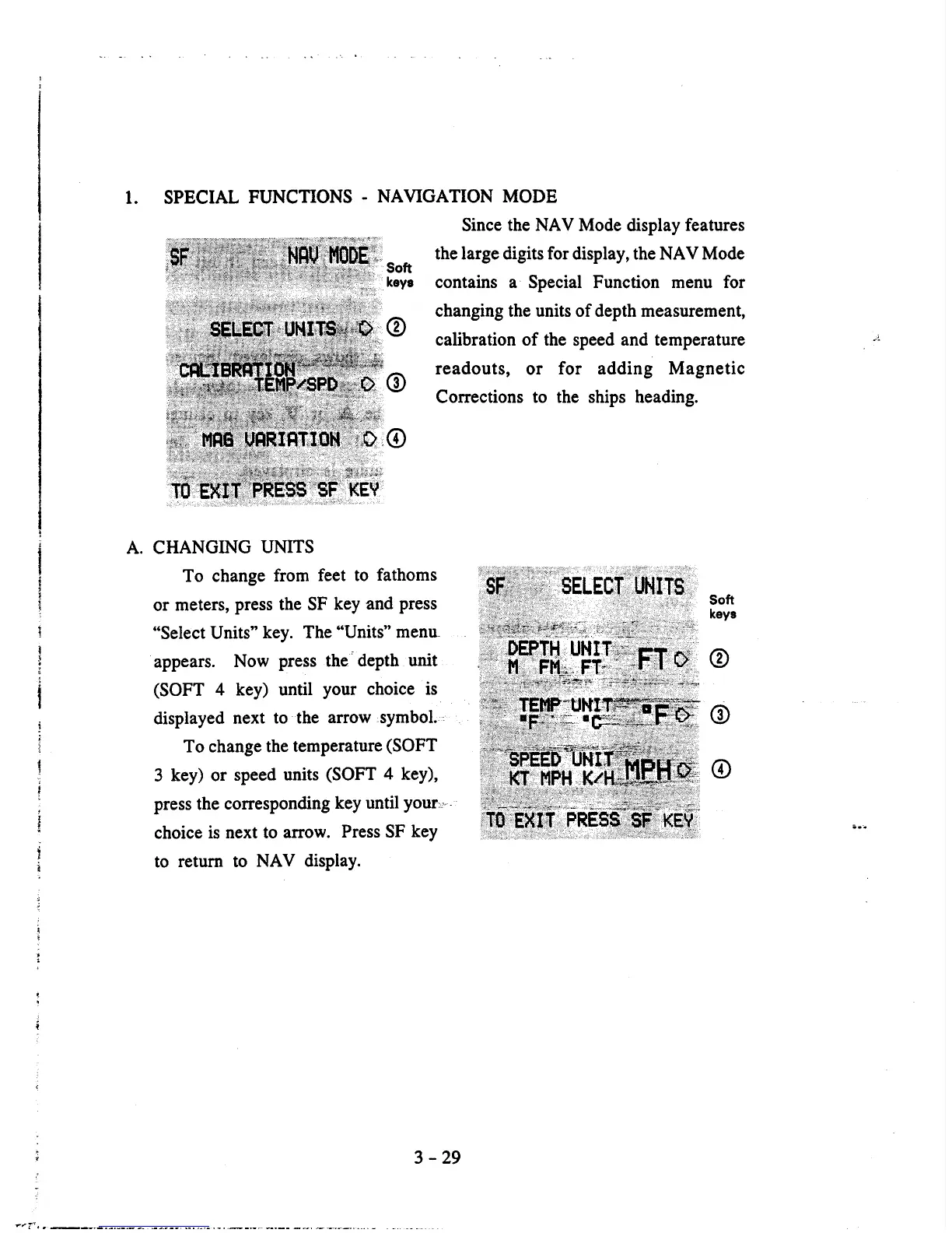 Raytheon V820 - Special Functions - Navigation Mode; Changing Units