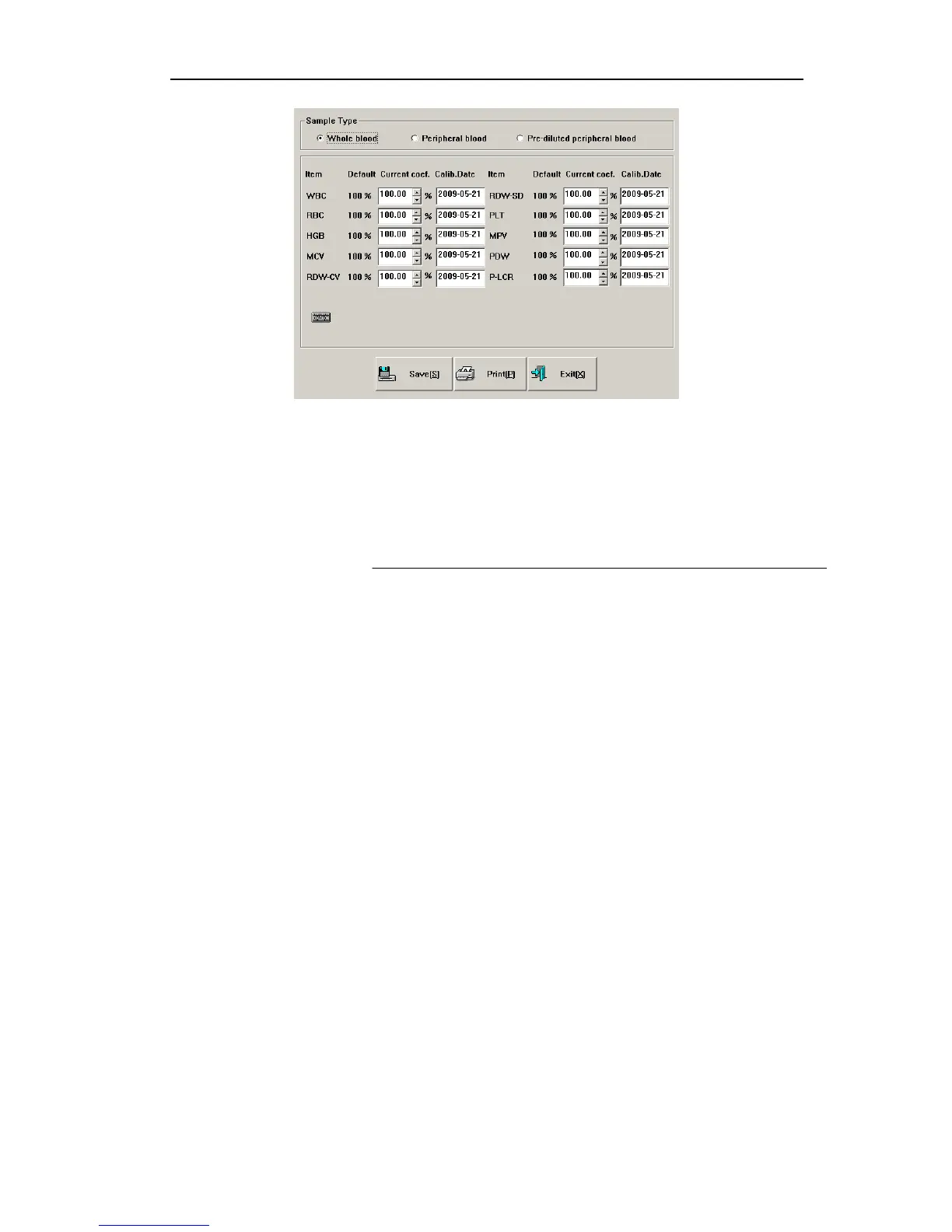4. In Manual Calibration screen, select sample type, input new calibration coefficient in