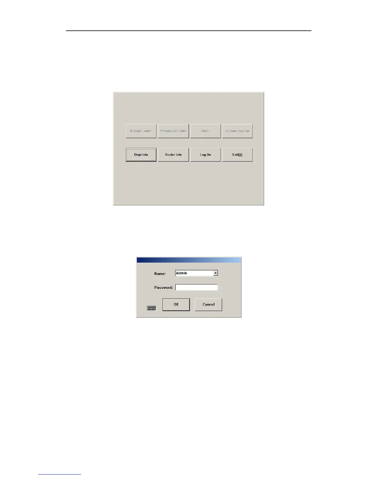 <Admin>, initial passwords are 1008. New menu after system administrator logon is as