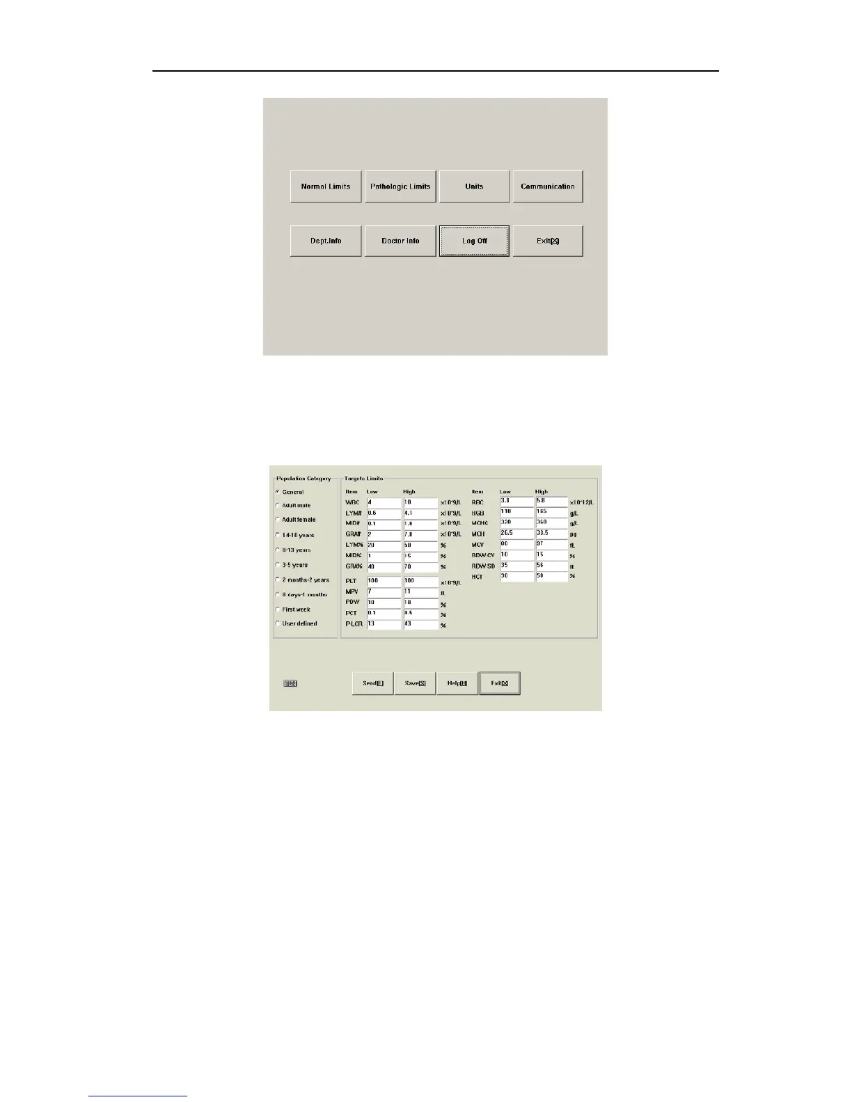 Click “Normal Limits” button, open setting menu as follows: