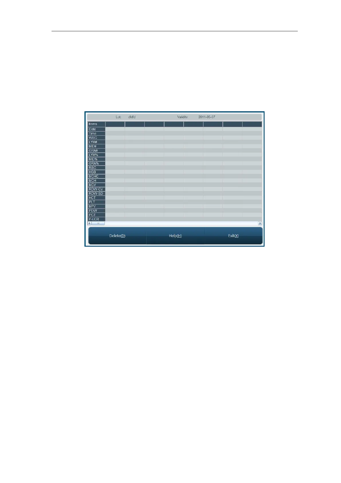 The instrument can look up X-R QC data by listing. In main screen, select QC file, go to QC