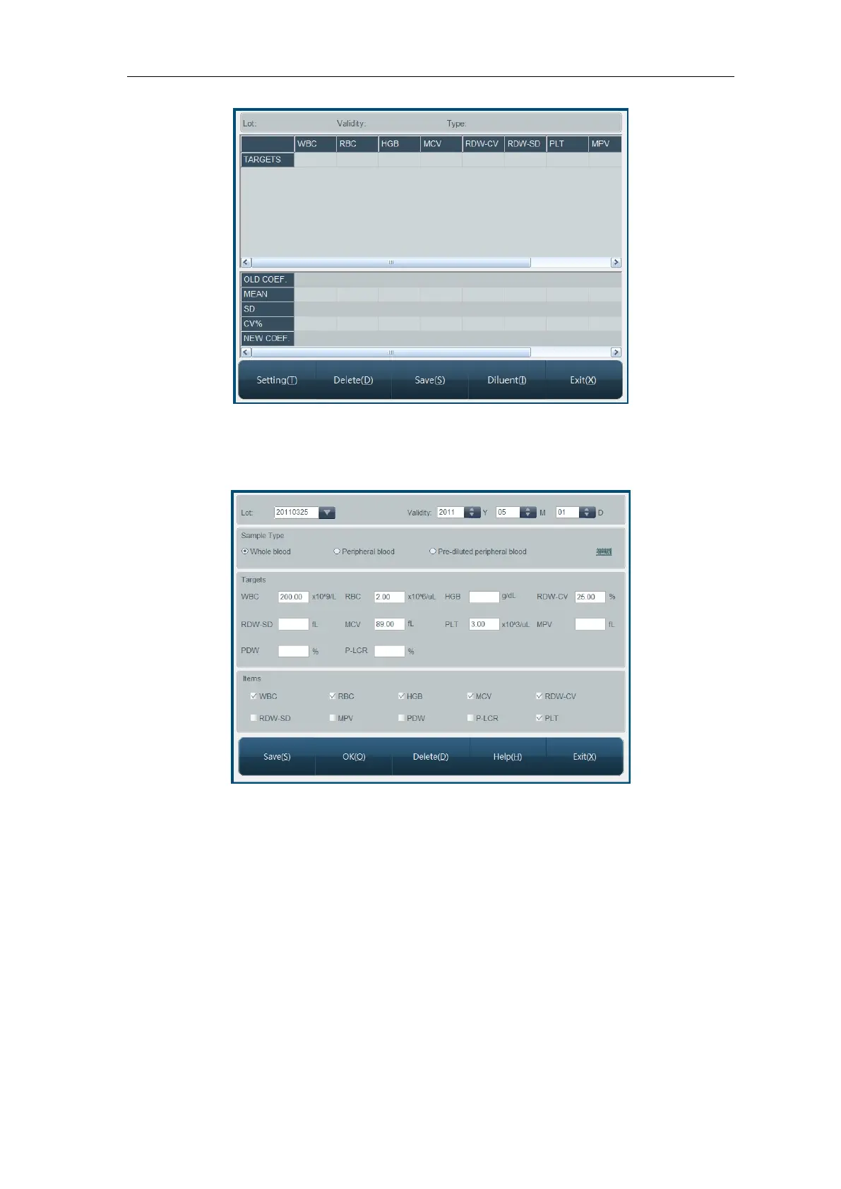 Lot No.: lot number of calibration sample, input and save, on next logon, you can select