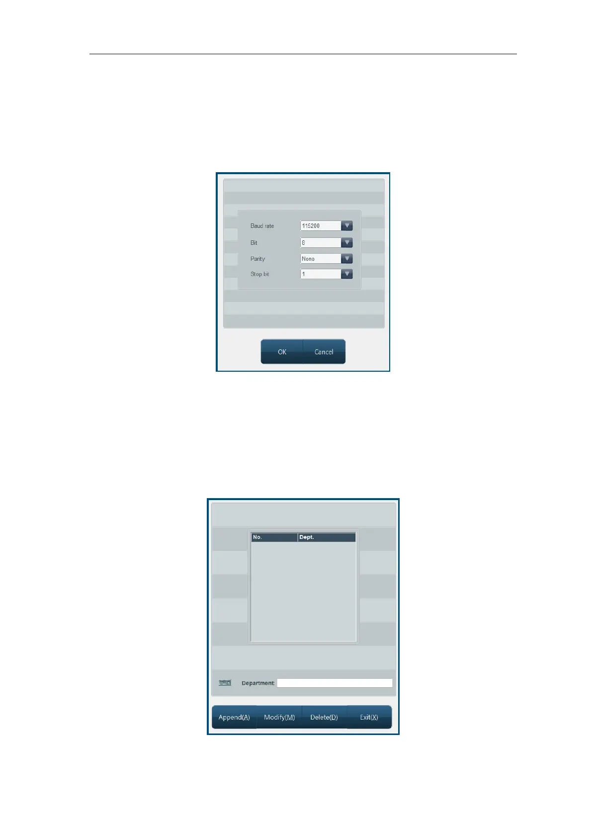 department data input. Click “Dept. Info” button, open department message menu as follows: