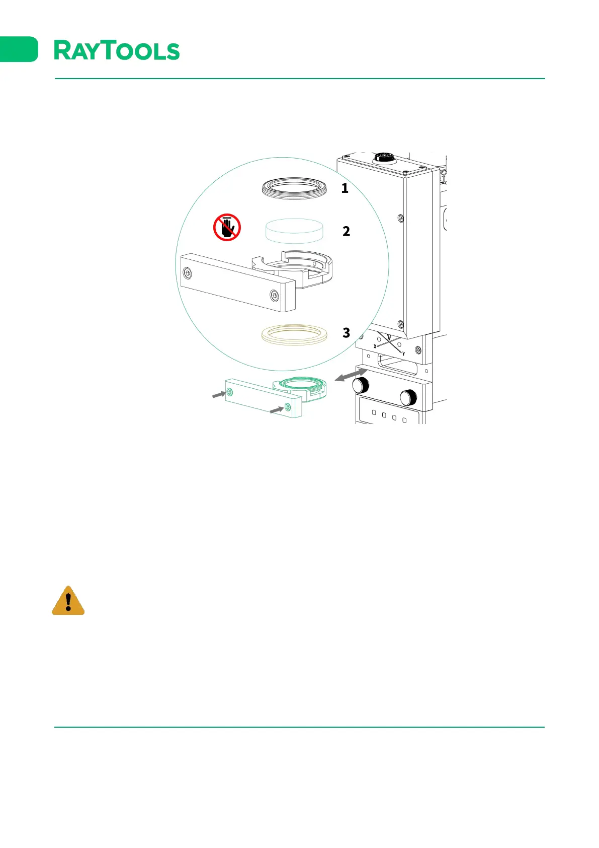 ▪ Insert the cover glass holder back to the laser head and tighten the bolts.