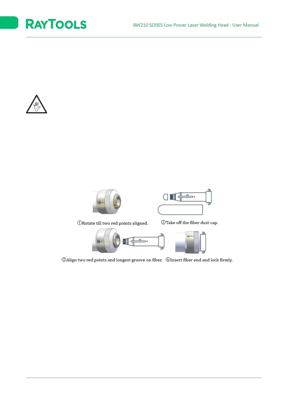 4. Insert the fiber end into QBH, then lift and rotate the outer sleeve until two contact surfaces fit.
