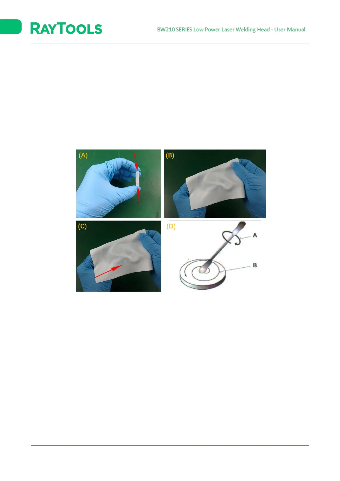 repeated till it is clean. A new piece of cleanroom wiper shall be used every time. Refer to figure (C);