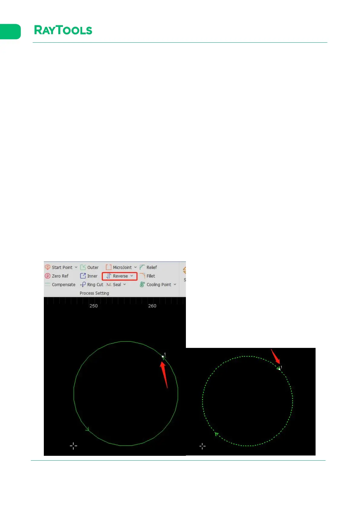(1) Reverse: if the processing direction now is clockwise, select the graphic and click on Reverse. Then, the selected