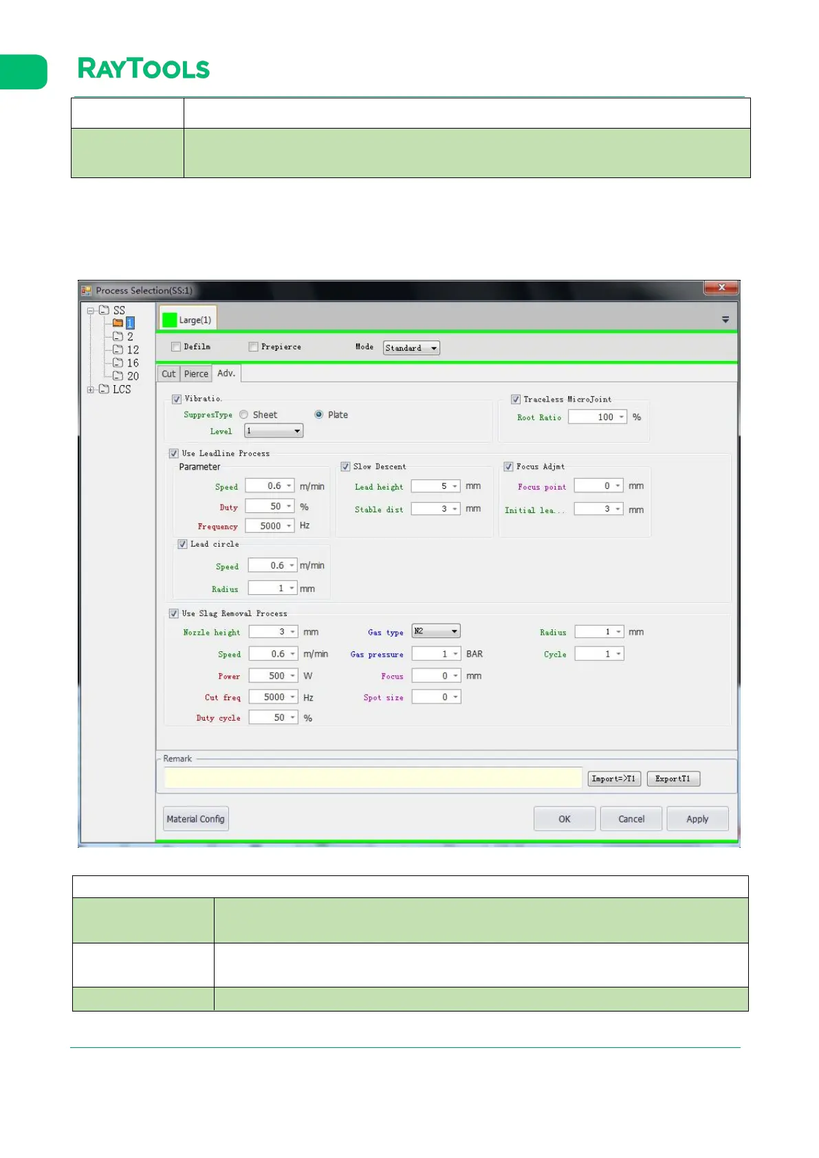 Click on Adv. next to Cut and Pierce. There will display the interface of setting advanced parameters, as shown below: