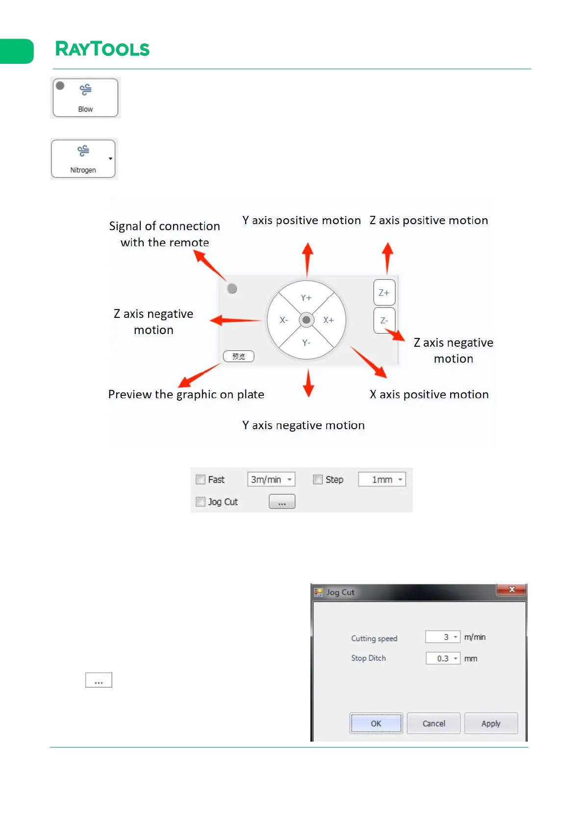 · Jog Cut: after selecting, click to move the axis and hold on.