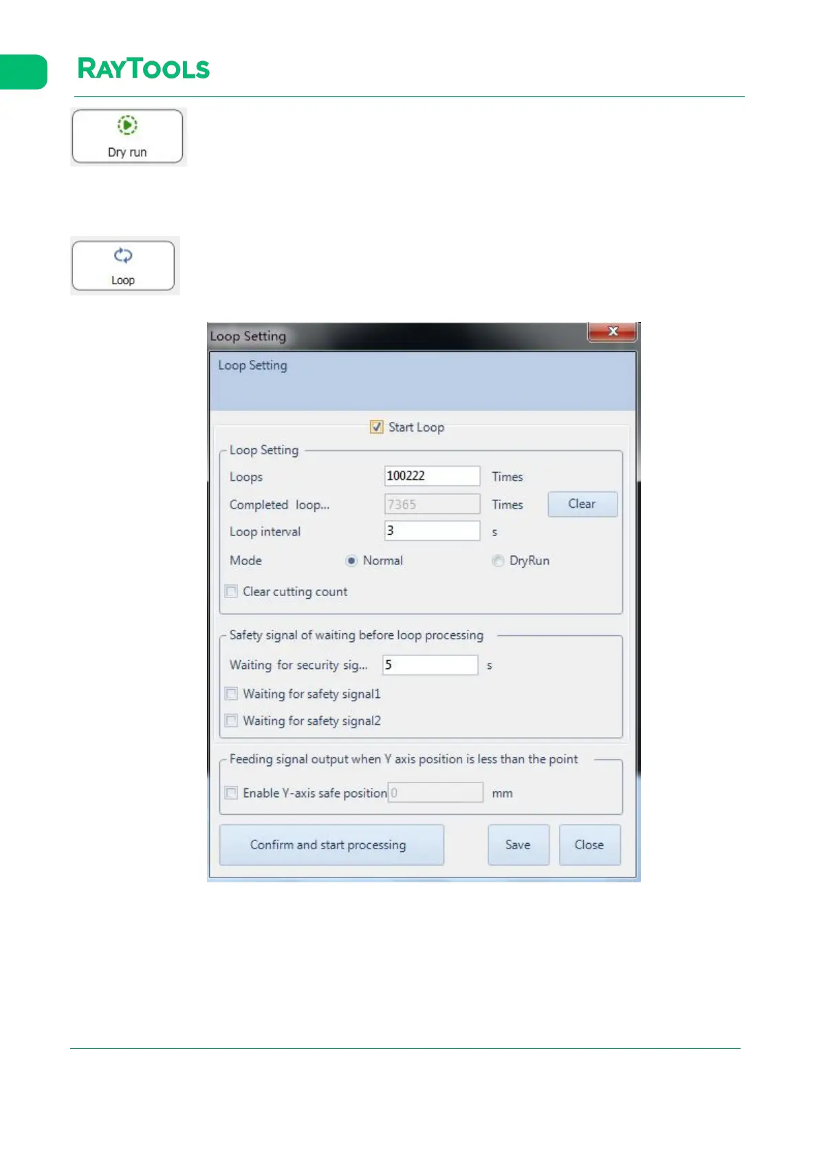 · Start Loop: select to start processing in loops.