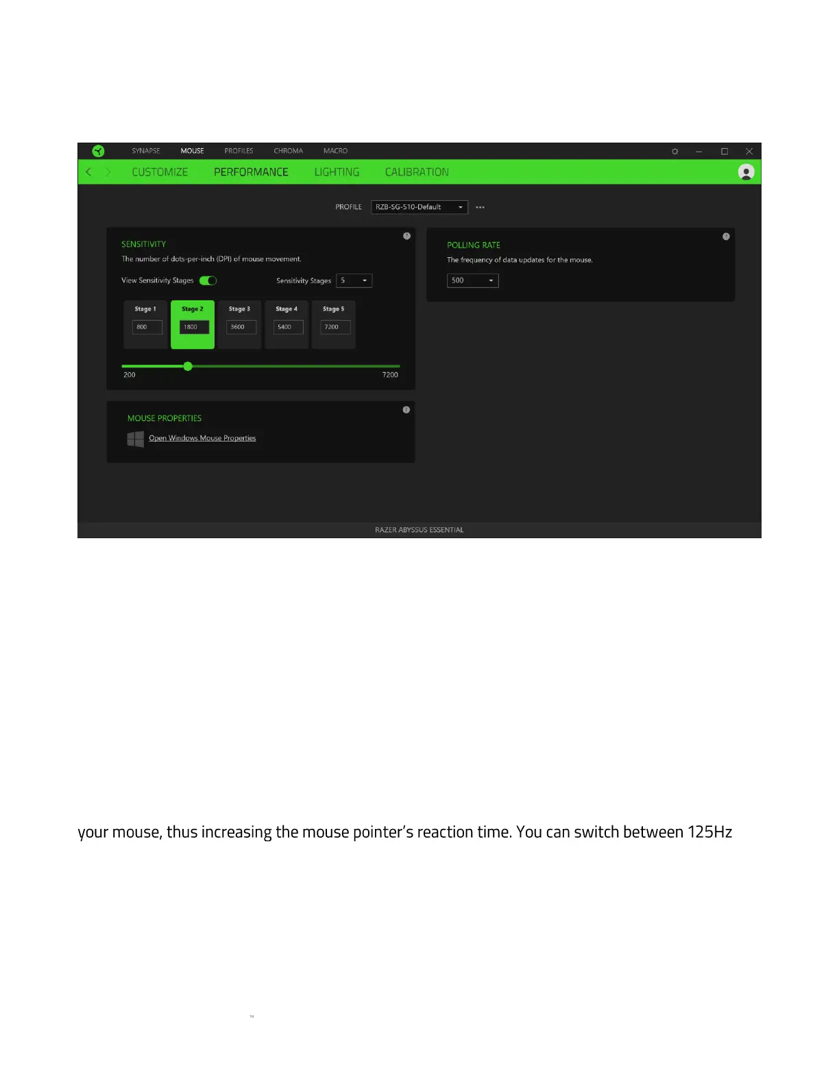 settings that can directly affect your Razer Abyssus Essential.