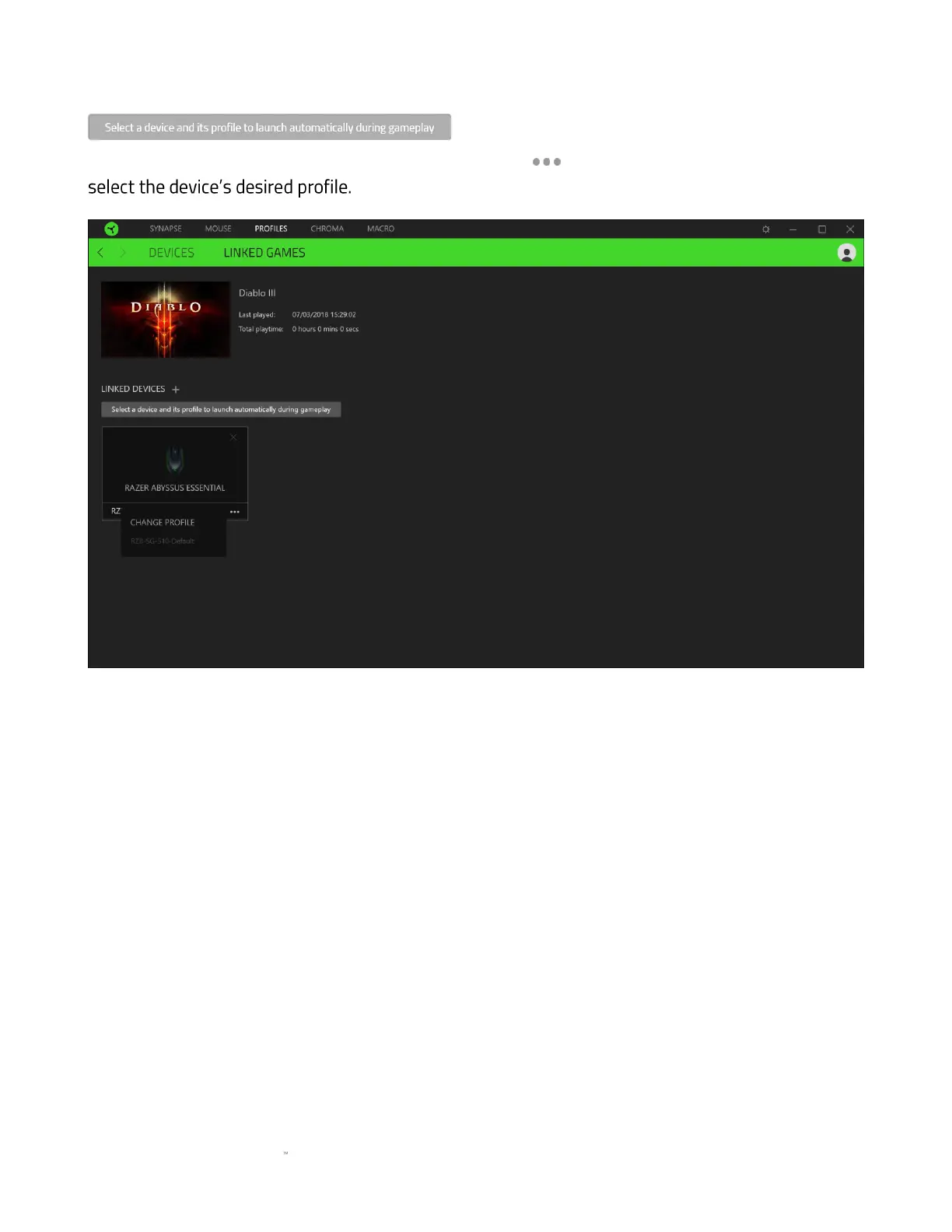 button to select the Razer device it will link with.