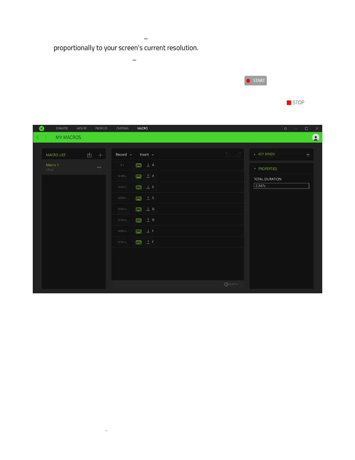 Binds option. You may also change the overall duration of the recorded macro through the Total