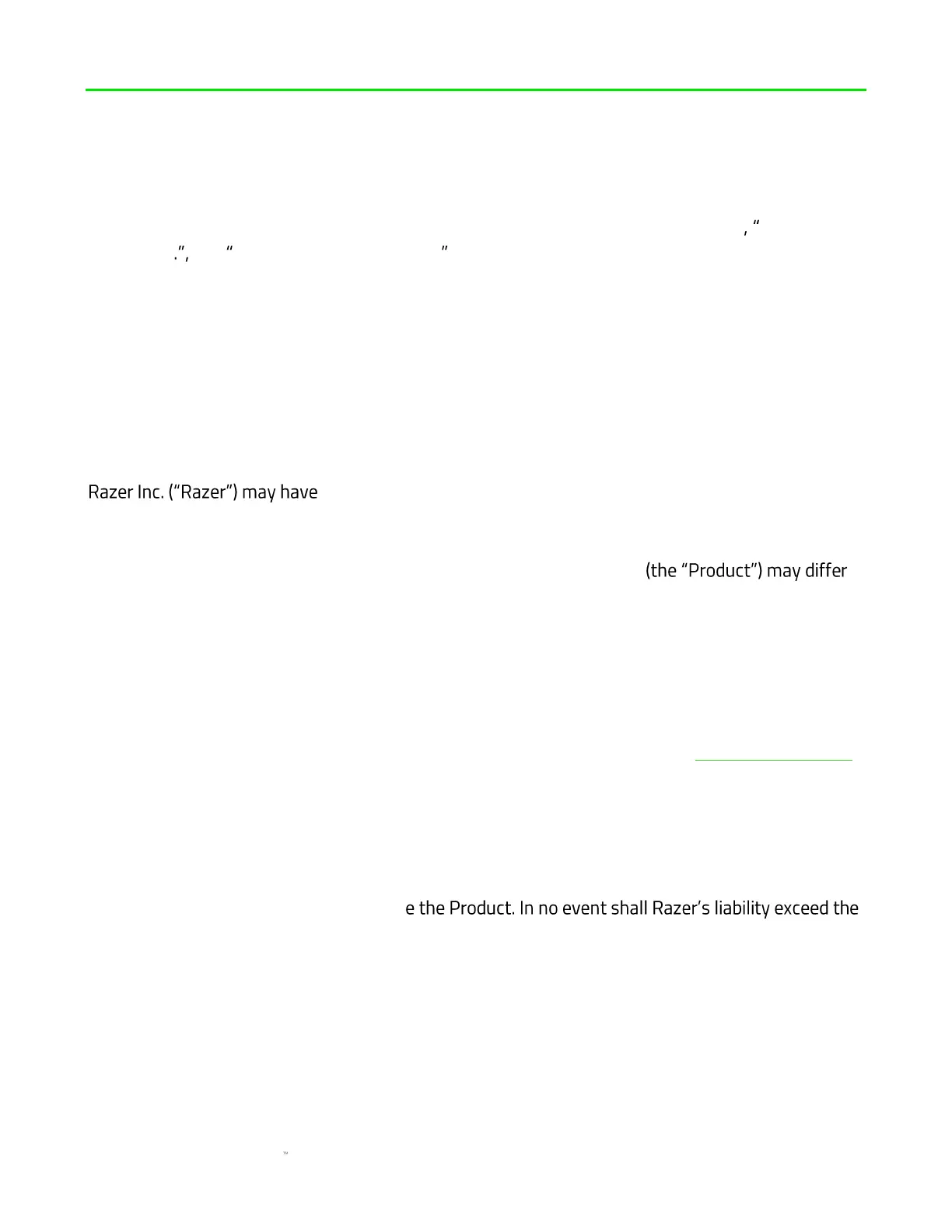 Razer shall in no event be liable for any lost profits, loss of information or data, special, incidental,