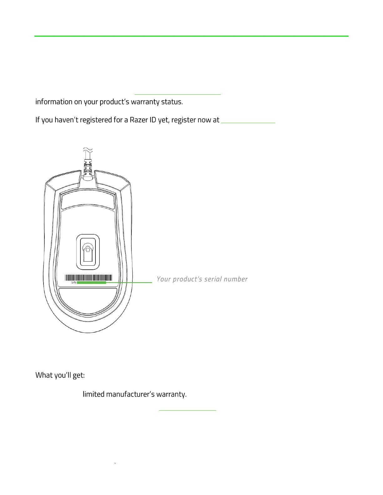 Register your product online at razerid.razer.com/warranty using your Razer ID to get real-time