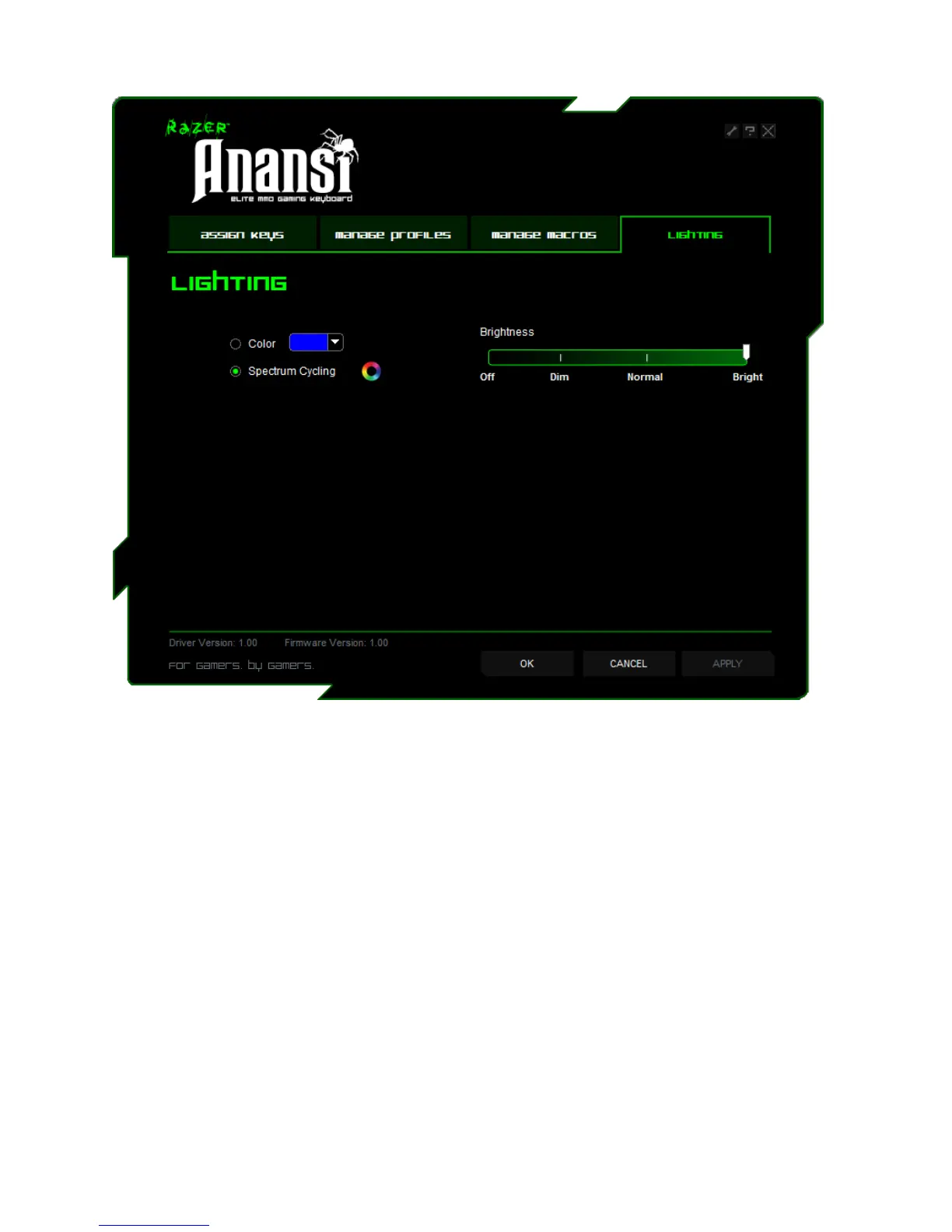 Razer Anansi - Lighting Tab