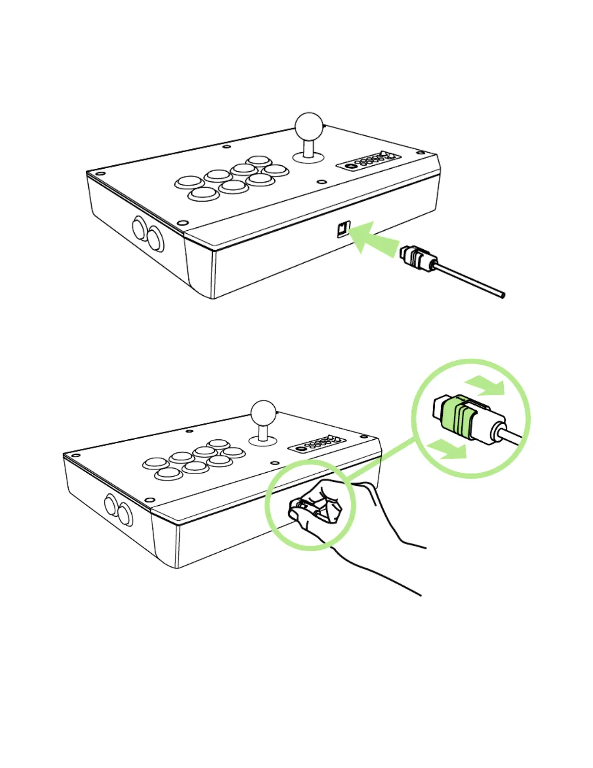 7. Connect the Detachable Cable to the back of your Razer Atrox.