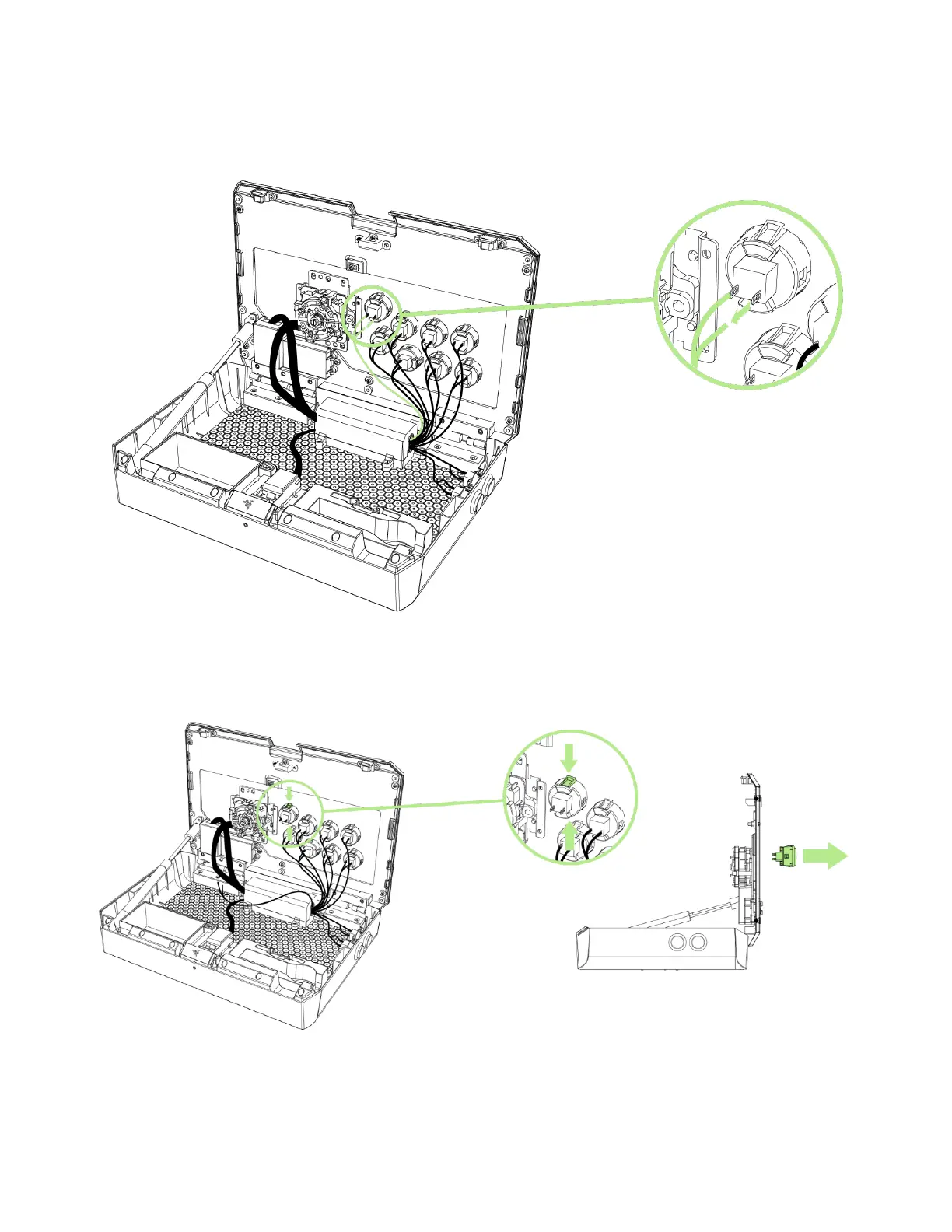 3. Carefully remove the cables from the action button.