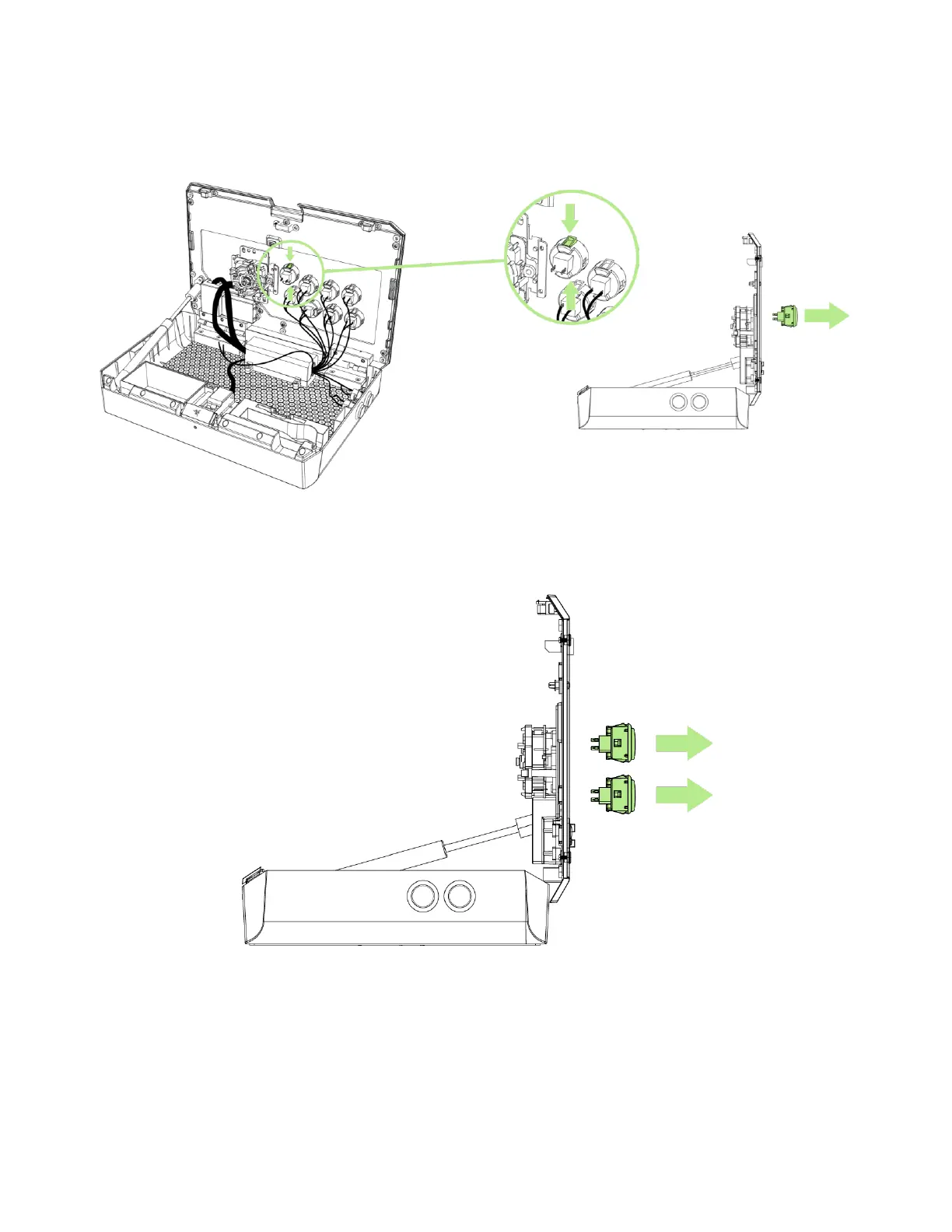 7. While holding the action button’s fastener, push the action button out.