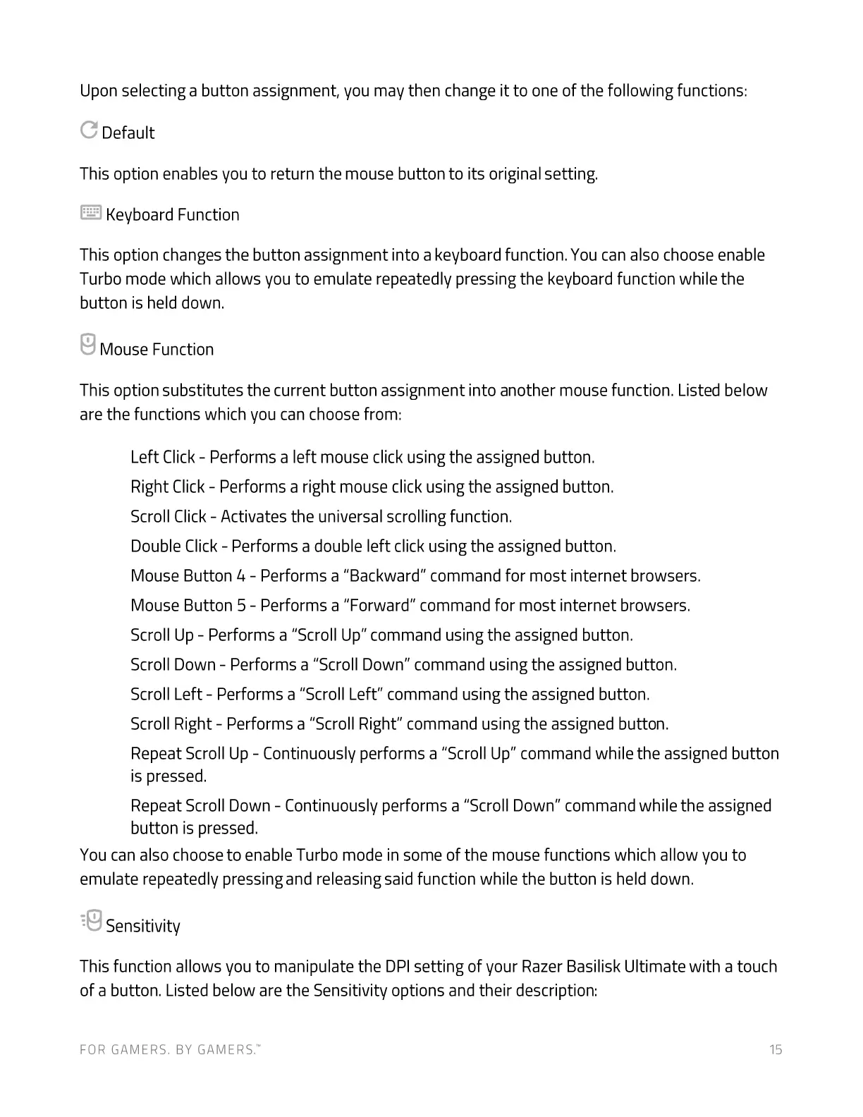 This function allows you to manipulate the DPI setting of your Razer Basilisk Ultimate with a touch