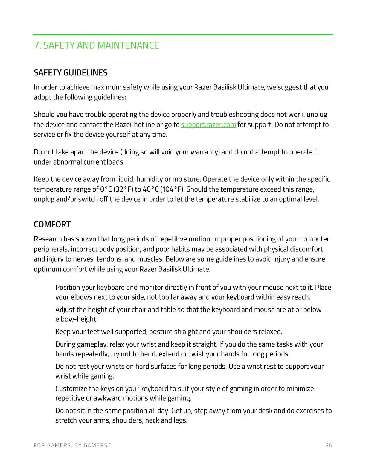 In order to achieve maximum safety while using your Razer Basilisk Ultimate, we suggest that you