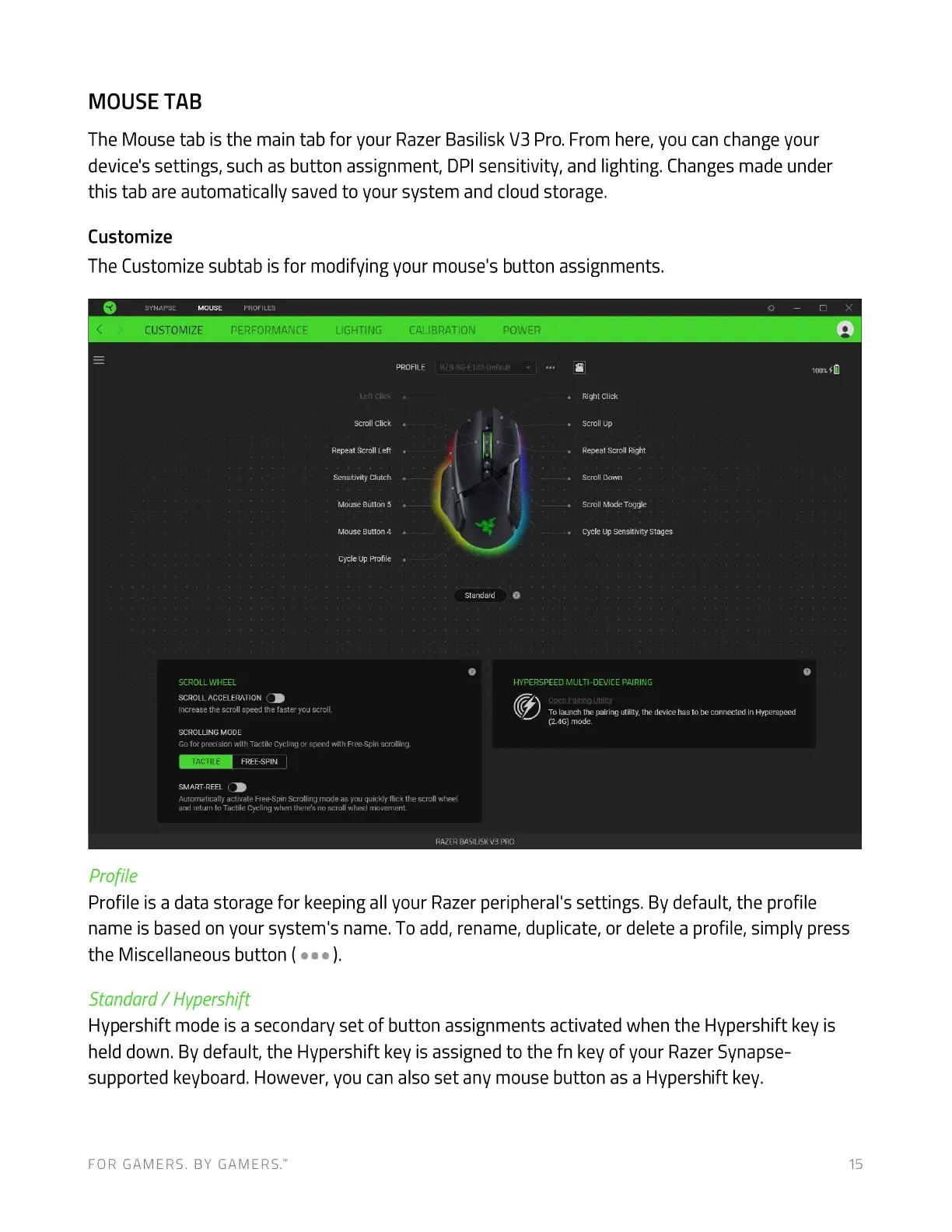 The Mouse tab is the main tab for your Razer Basilisk Pro. From here, you can change your