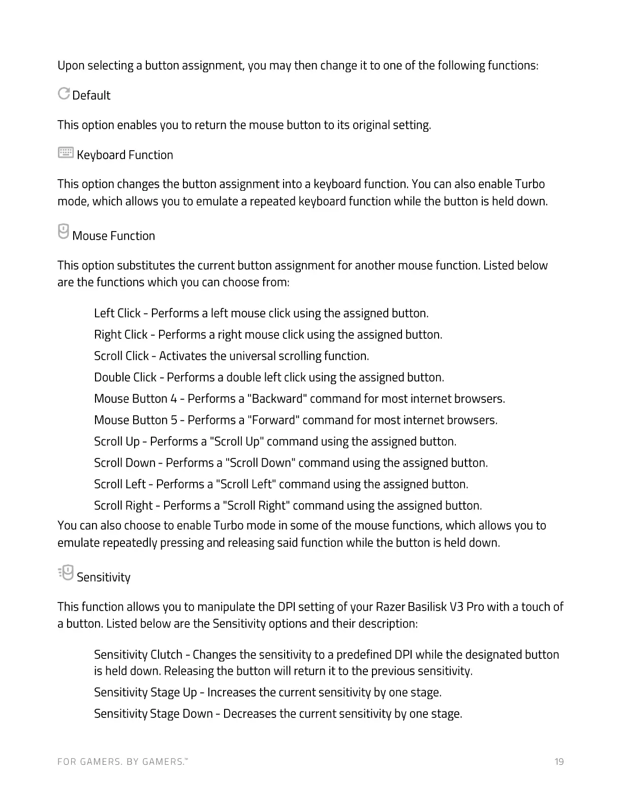 This option changes the button assignment into a keyboard function. You can also enable Turbo