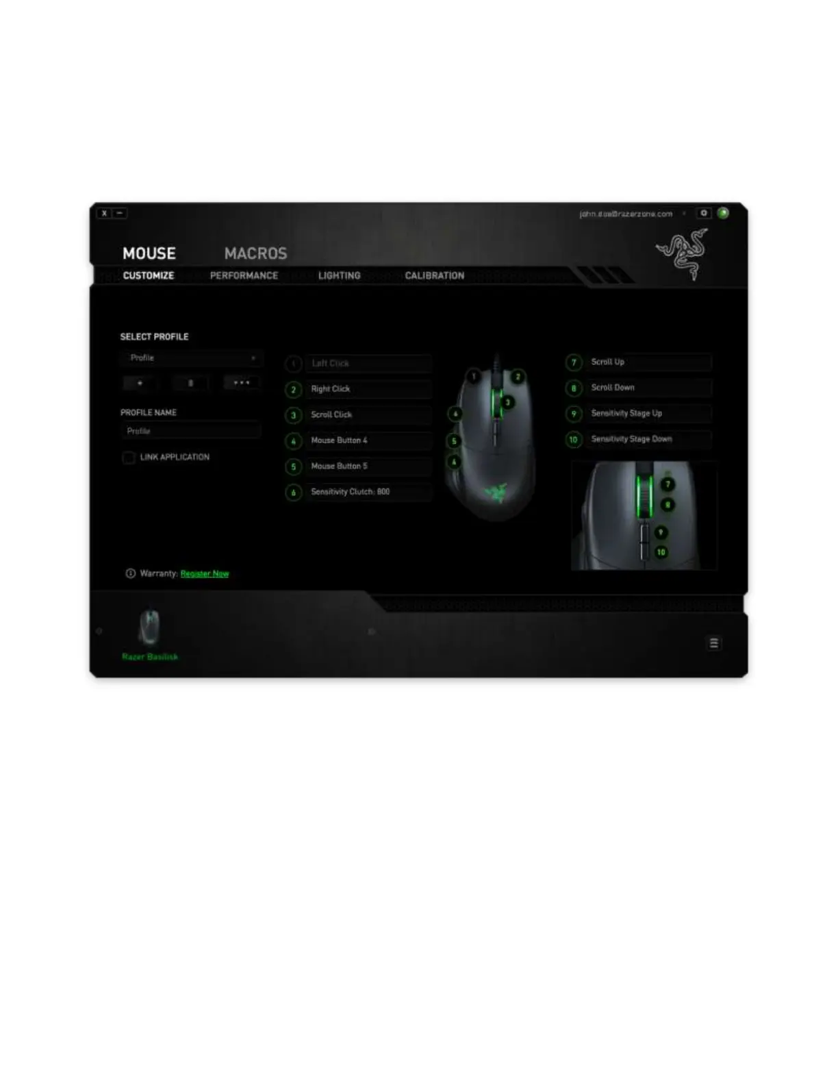 Razer BASILISK - CUSTOMIZE TAB FUNCTIONS