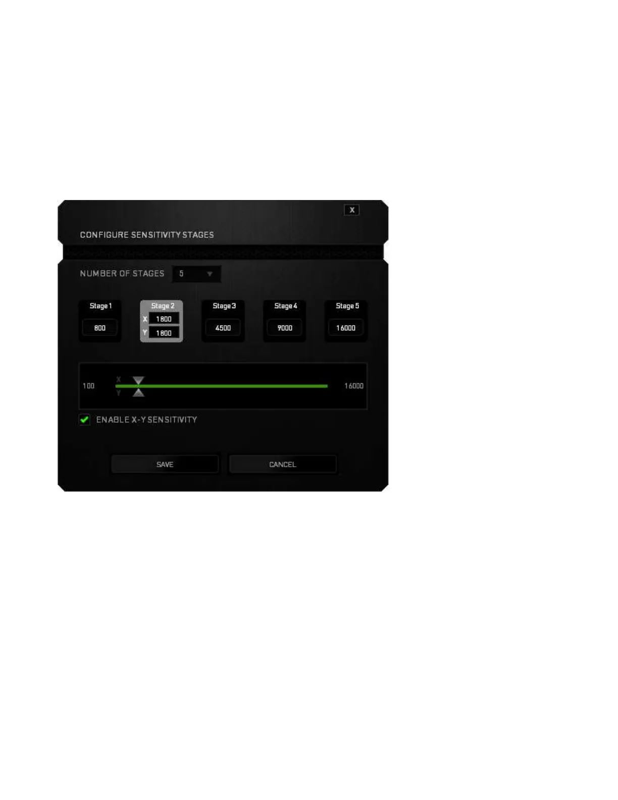 A sensitivity stage is a preset sensitivity value. You can create up to 5 different sensitivity stages which