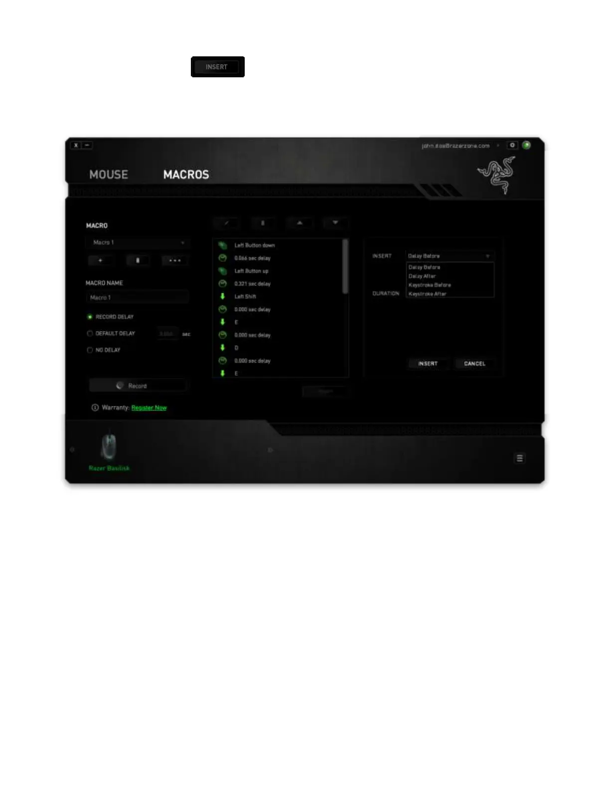 macro commands. The dropdown menu on this window allows you to choose a keystroke or a delay