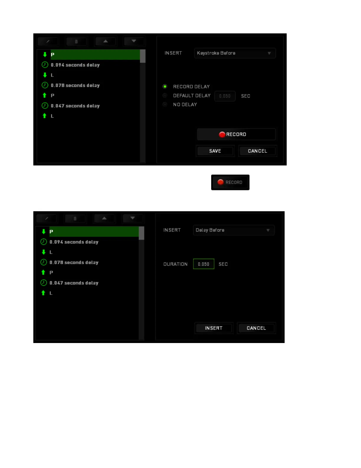 You may add in a new set of macro commands by clicking the button on the keystroke