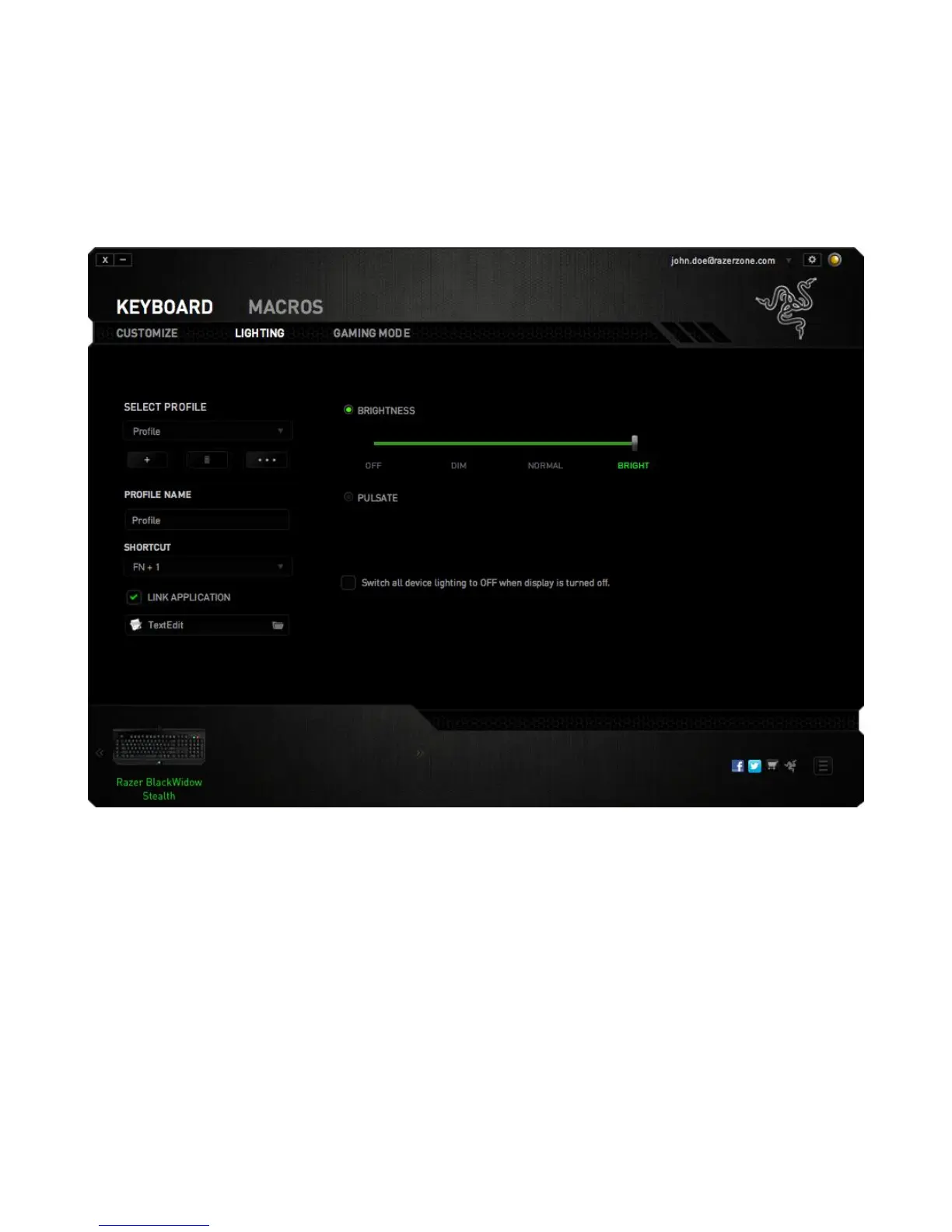 Razer BlackWidow Stealth - Lighting Tab Settings