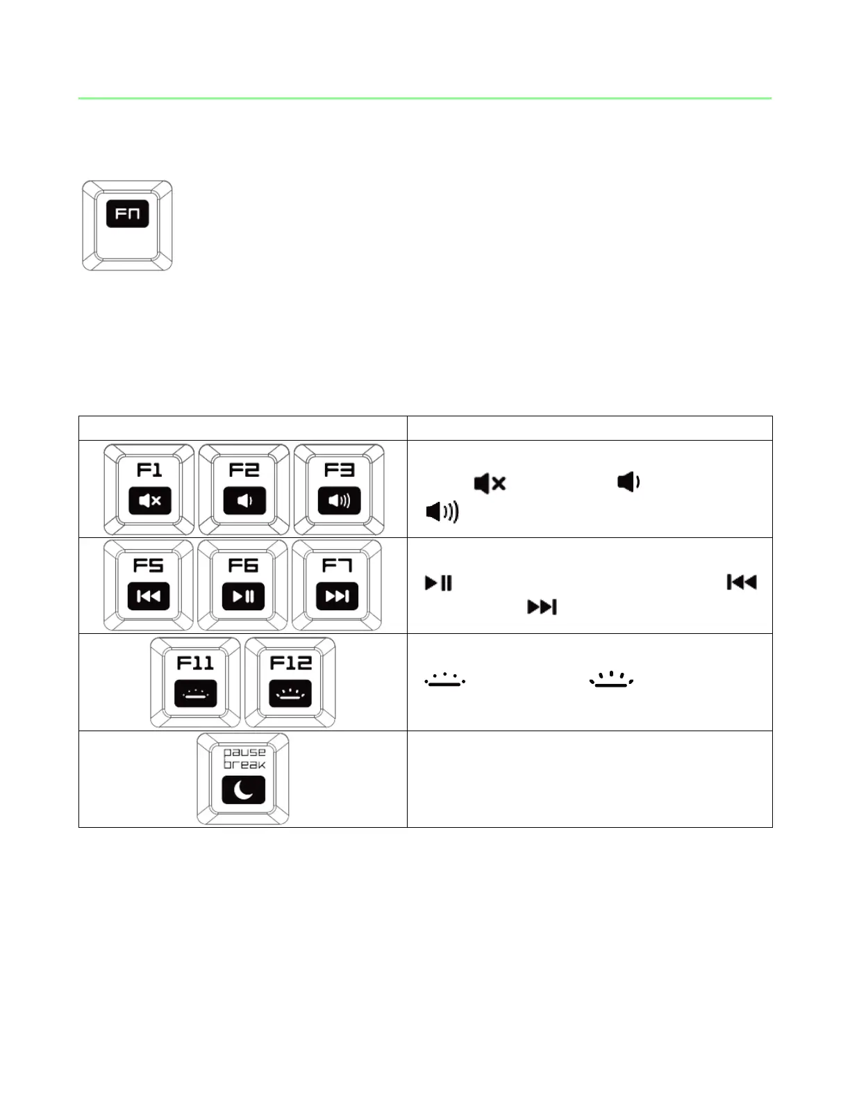 Pressing the “FN” key in combination with the function keys will activate their